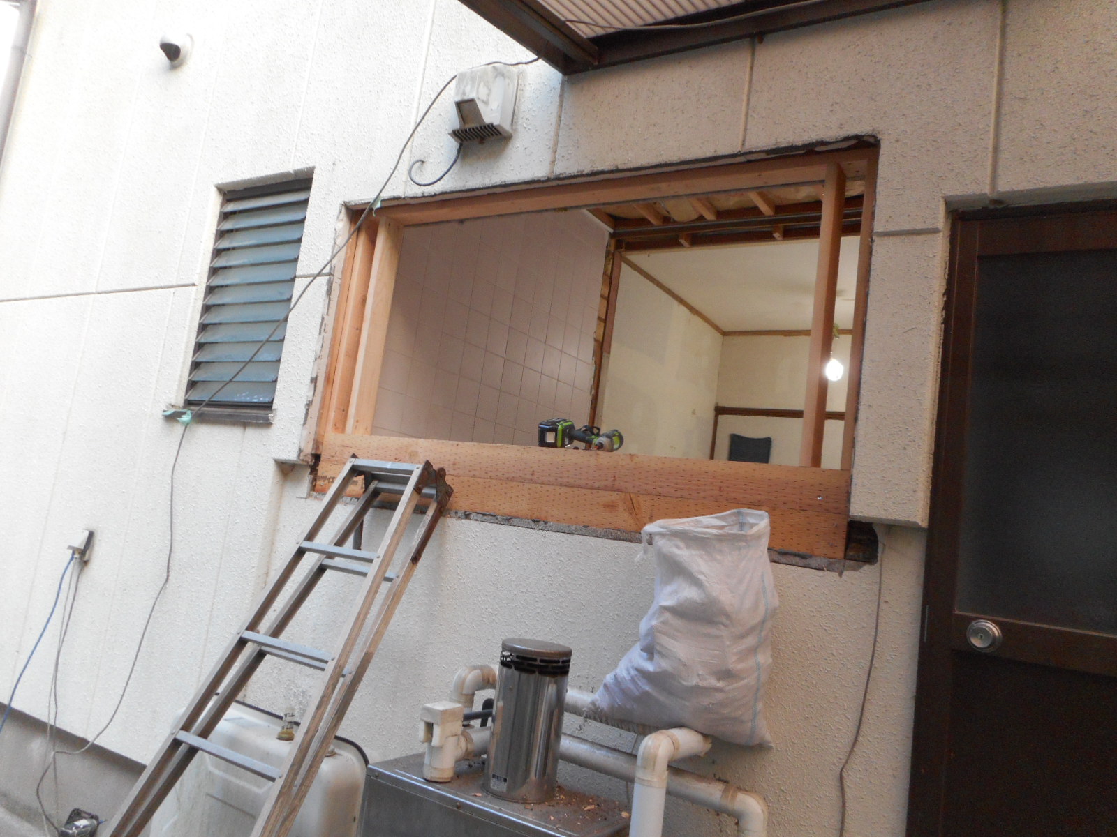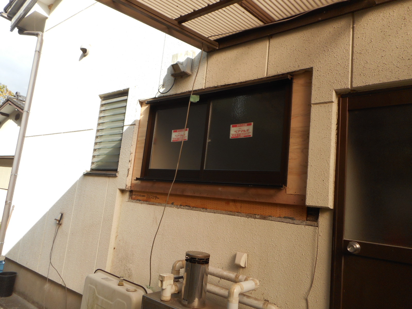 | 既存サッシを撤去し、一廻り小さいサッシに交換します!! | 新規サッシ用の窓廻りの、造作をします!! |