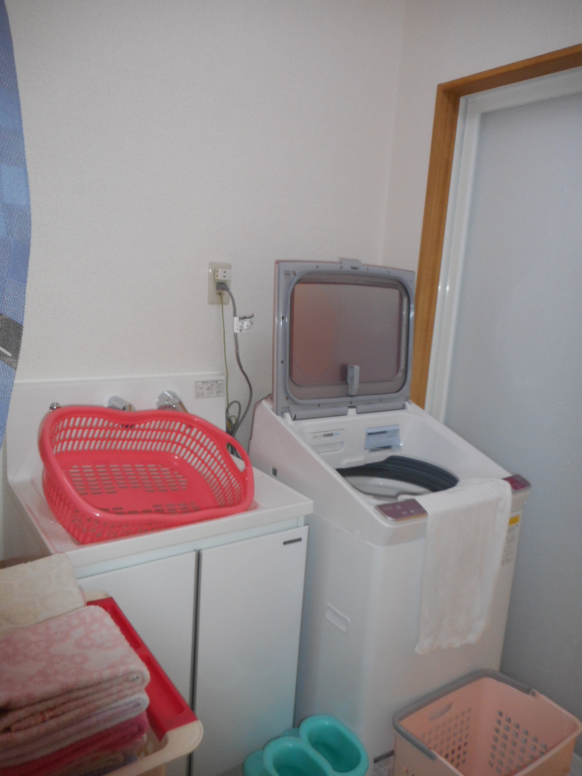 アフター!!(以前より少し狭くなったので、洗濯機を1台にし小物の洗濯用にと、化粧台の下台のみを新設しました) |