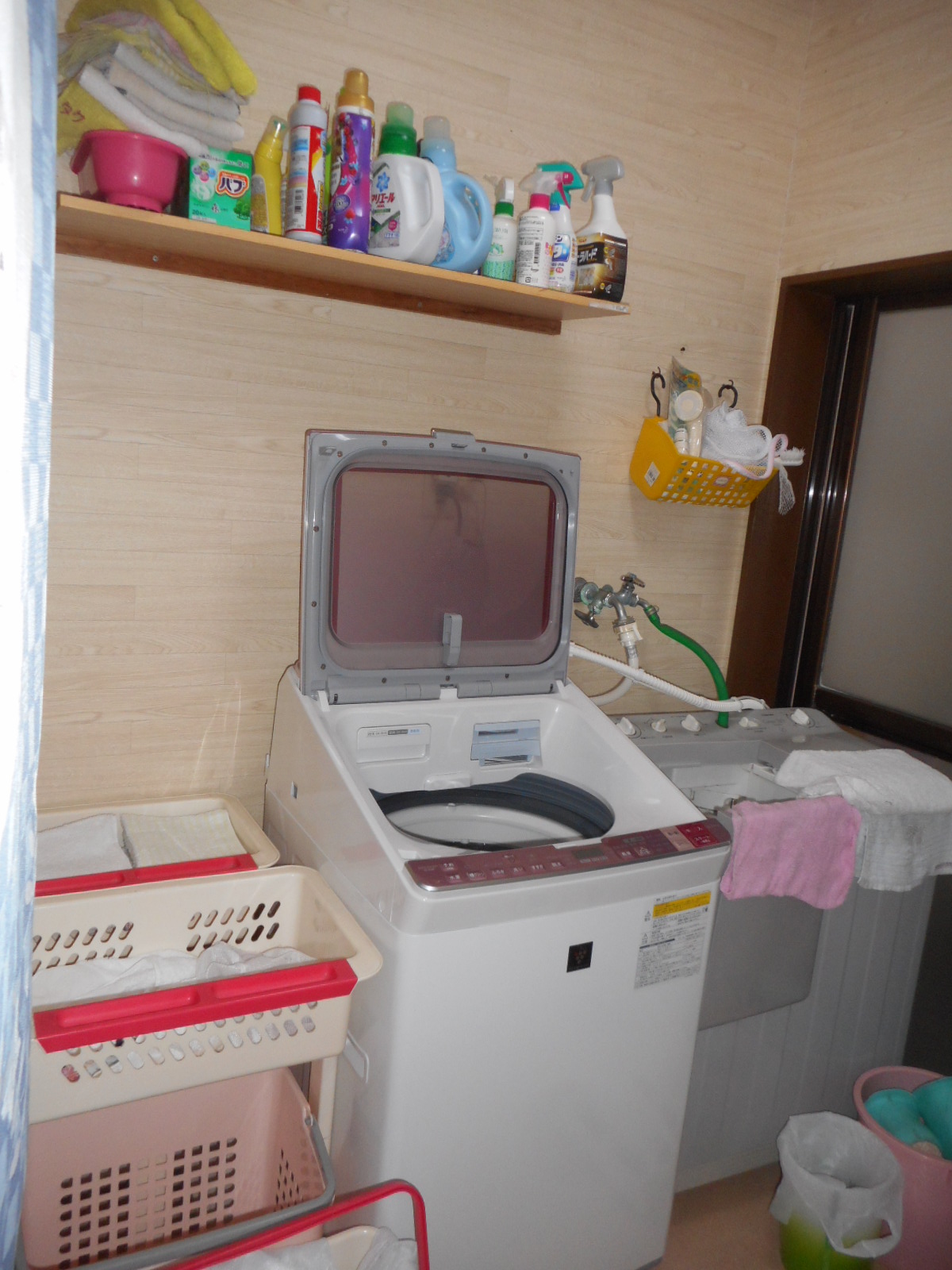 | ビフォー!! (洗濯機が2台と脱衣かごが置かれています) ⇒ |