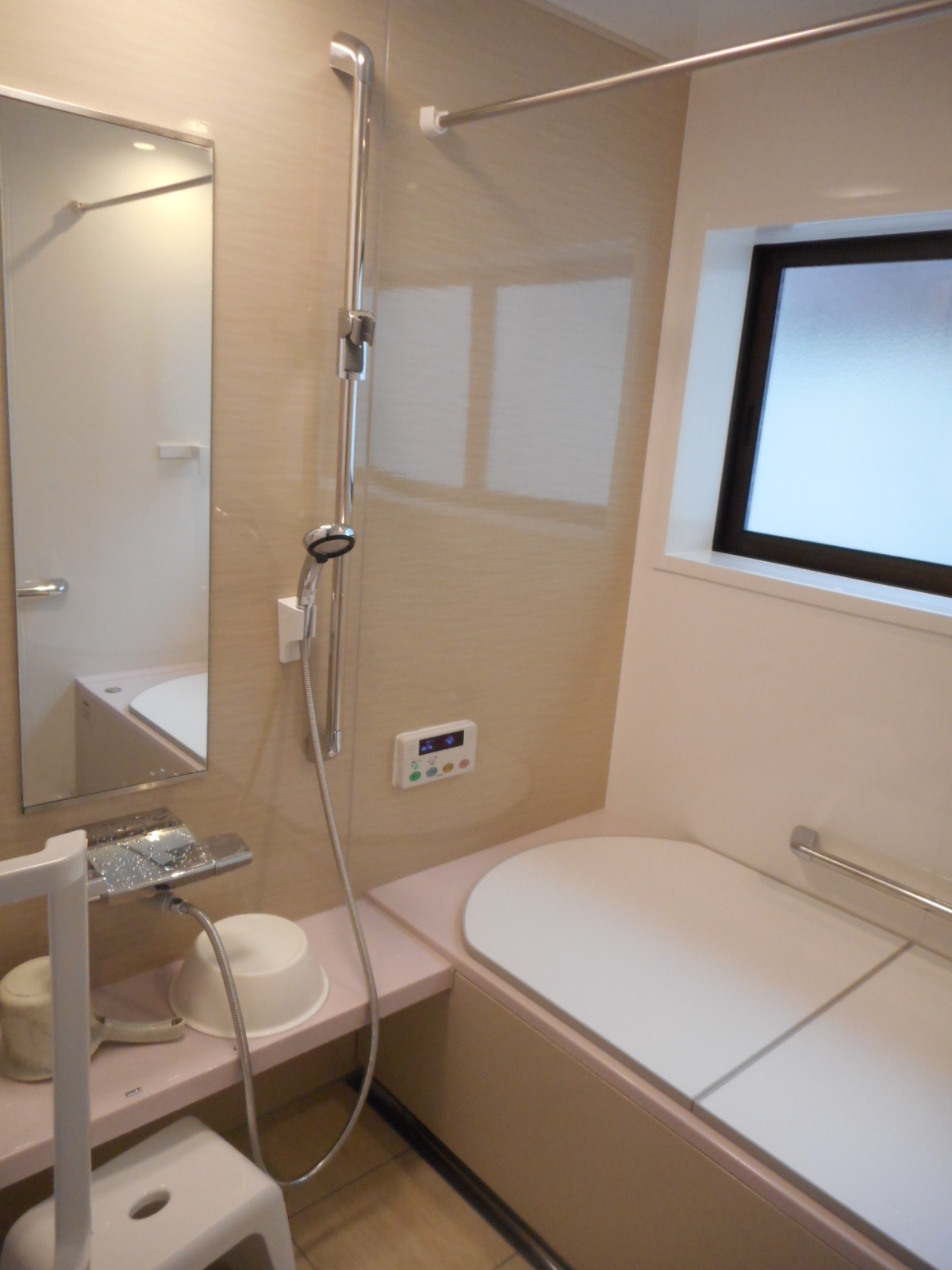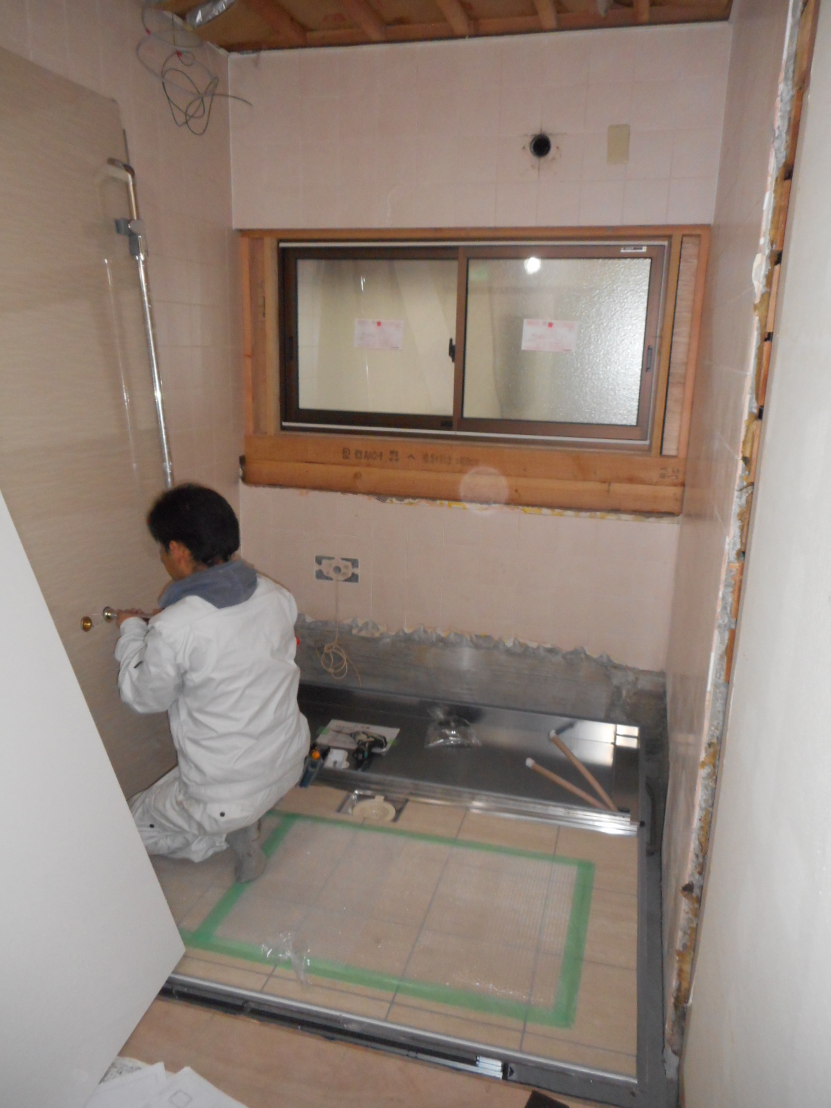 | カウンターや洗い場水栓を、取付けます!! | 窓側に手摺りも、取付けました!! |