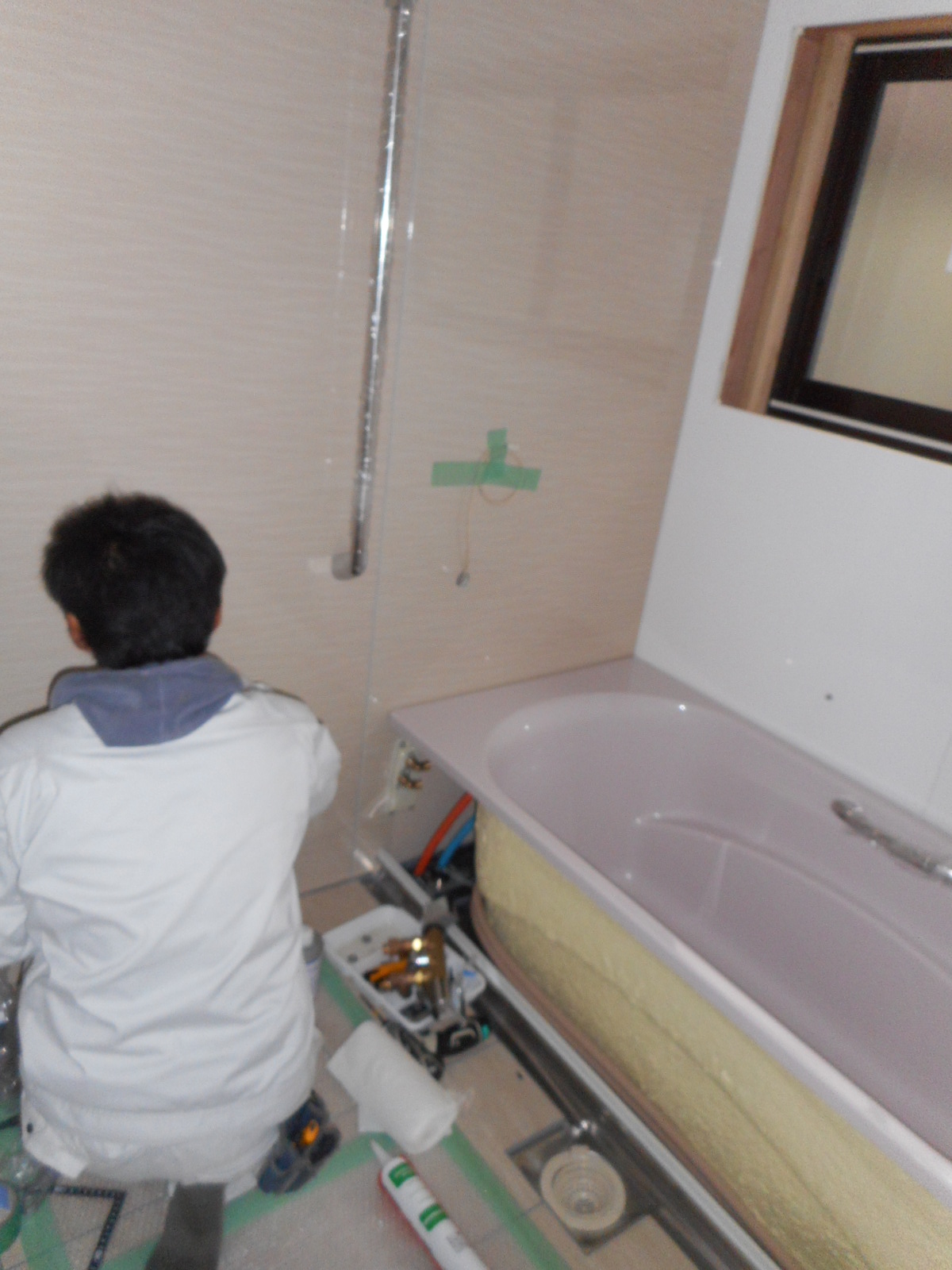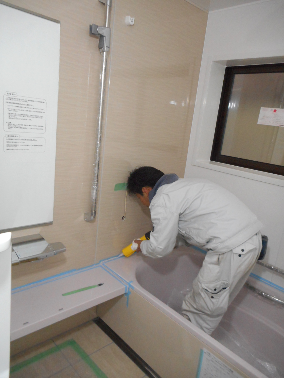 | 仕上げのコーキングを打ちます!! | 浴槽廻りも、しっかりコーキングを打ちます!! |