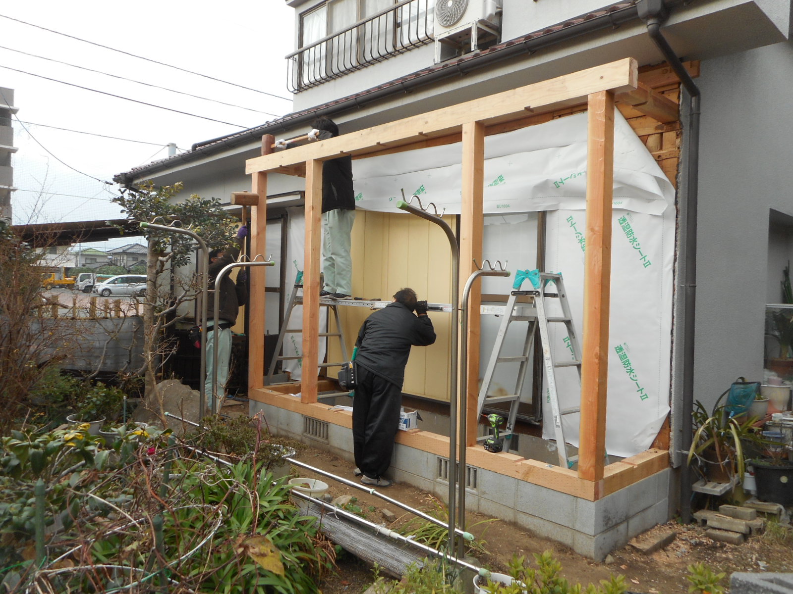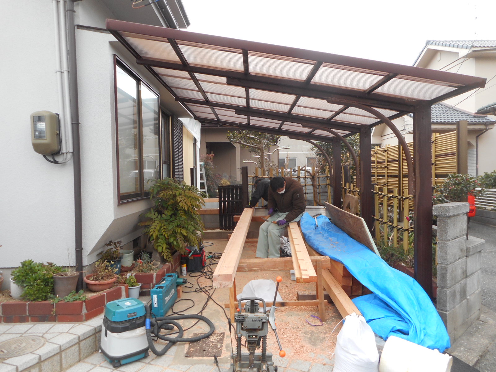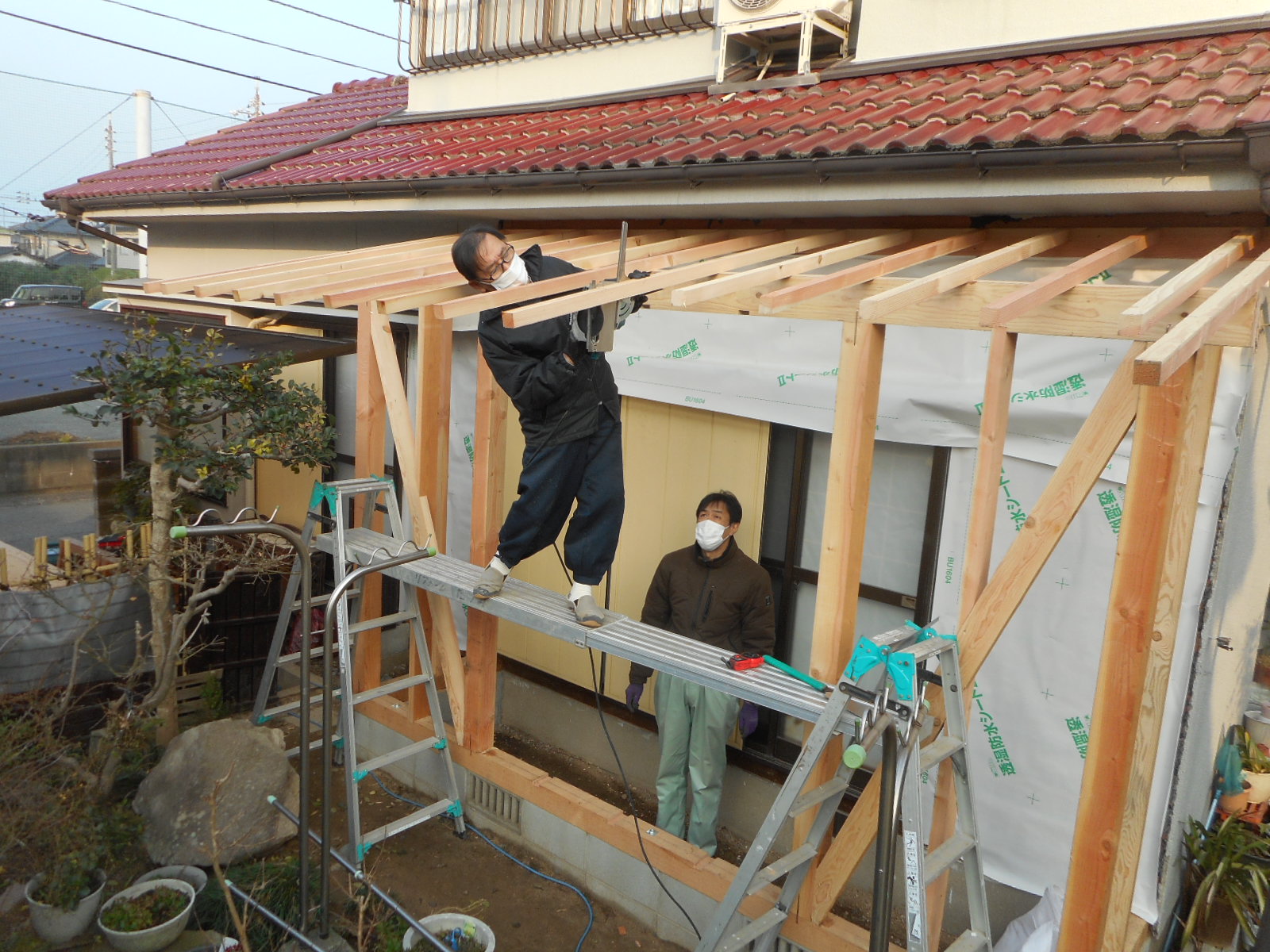 1/15から、梶栗町で広縁の増築工事を行いました。