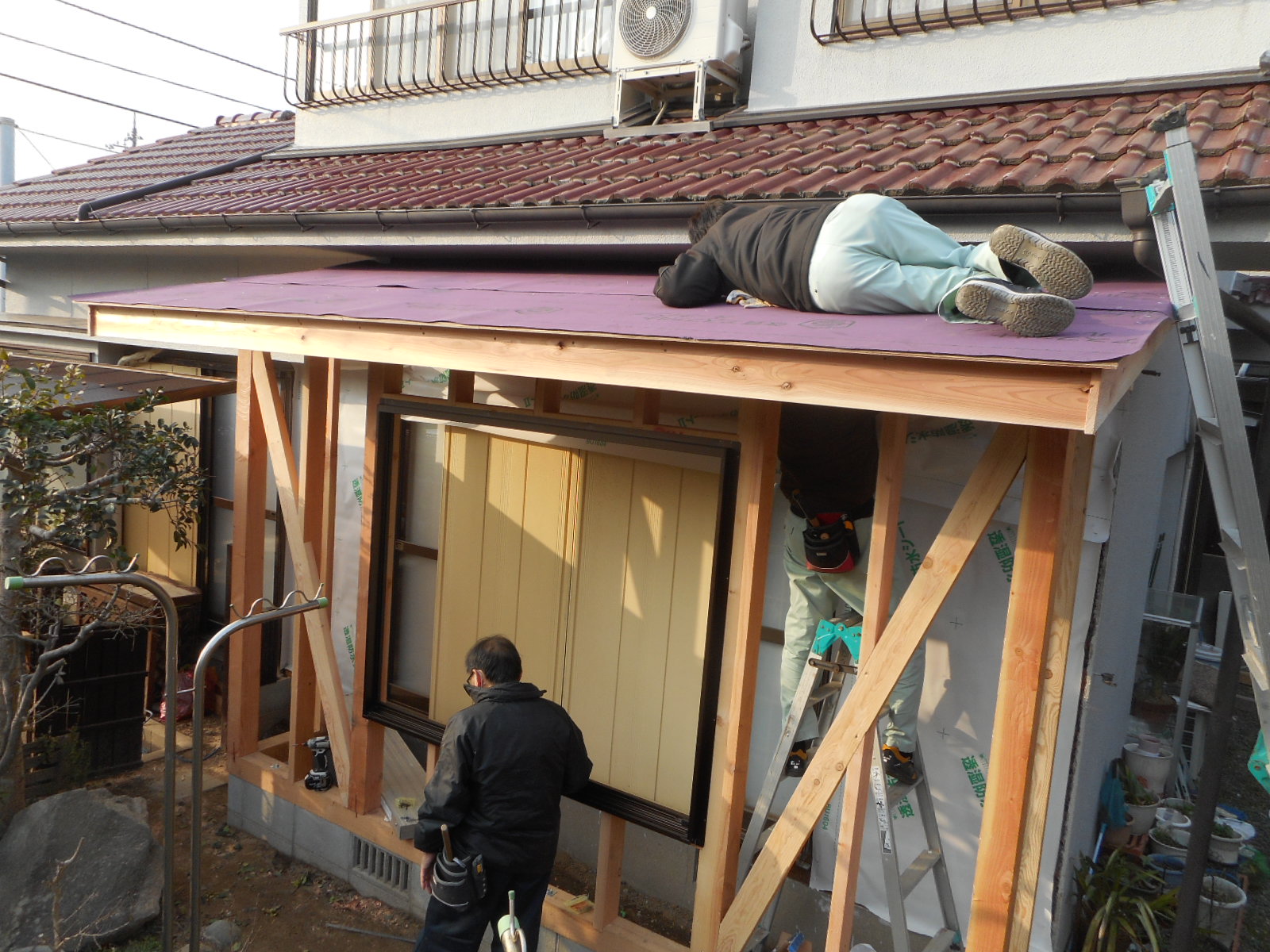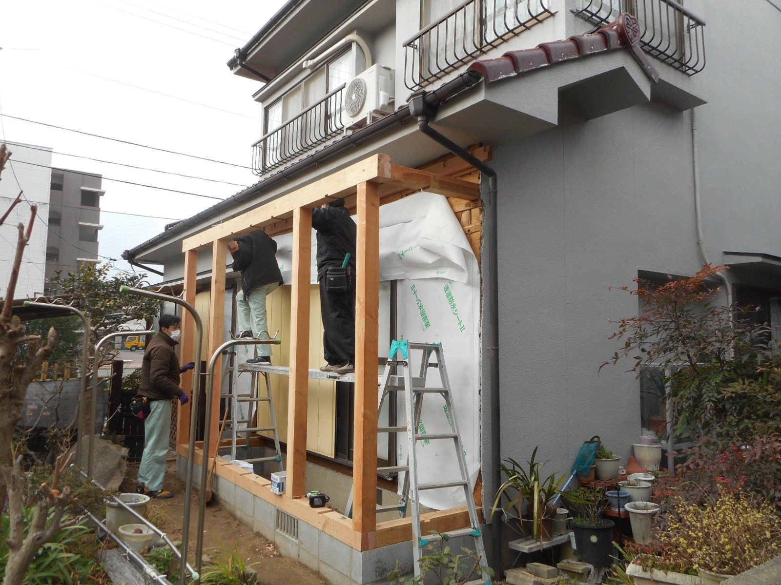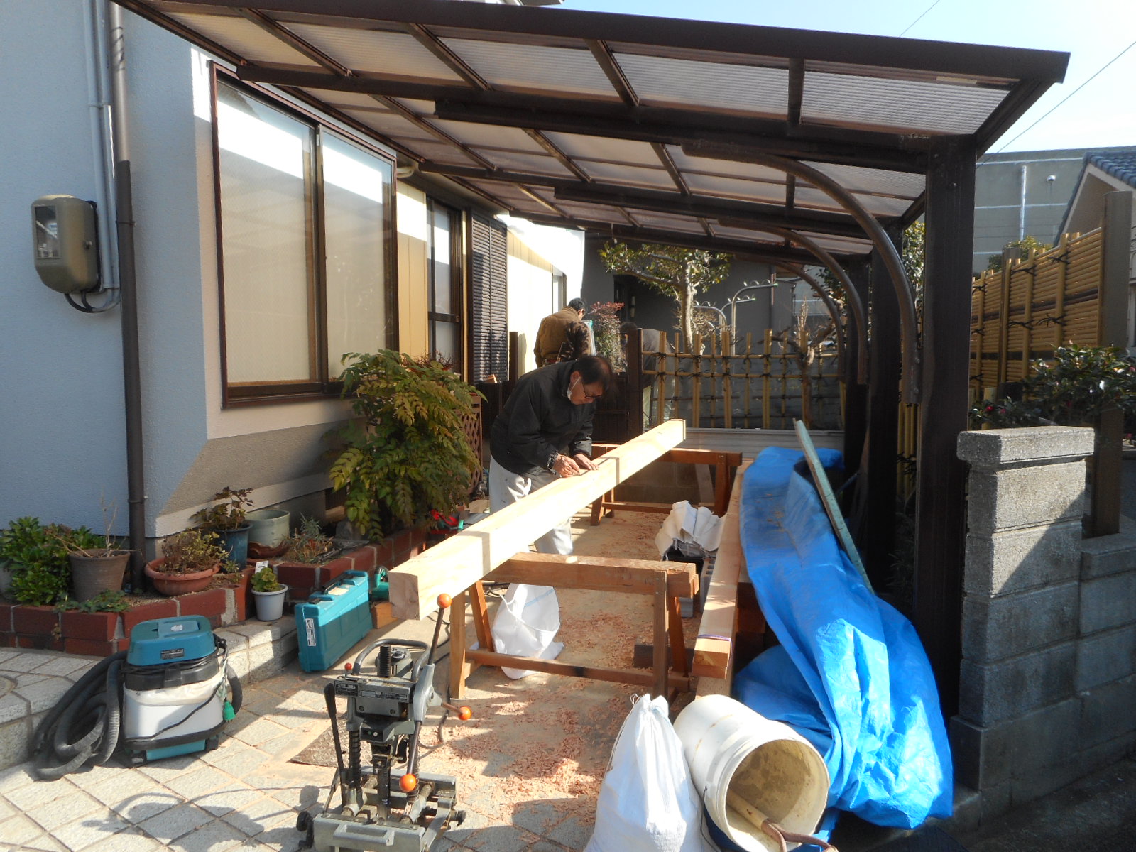1/15から、梶栗町で広縁の増築工事を行いました。