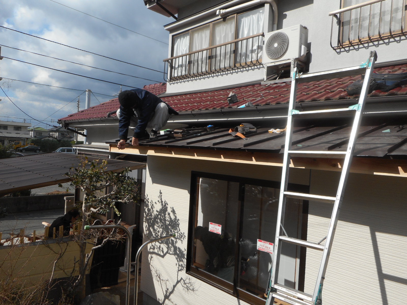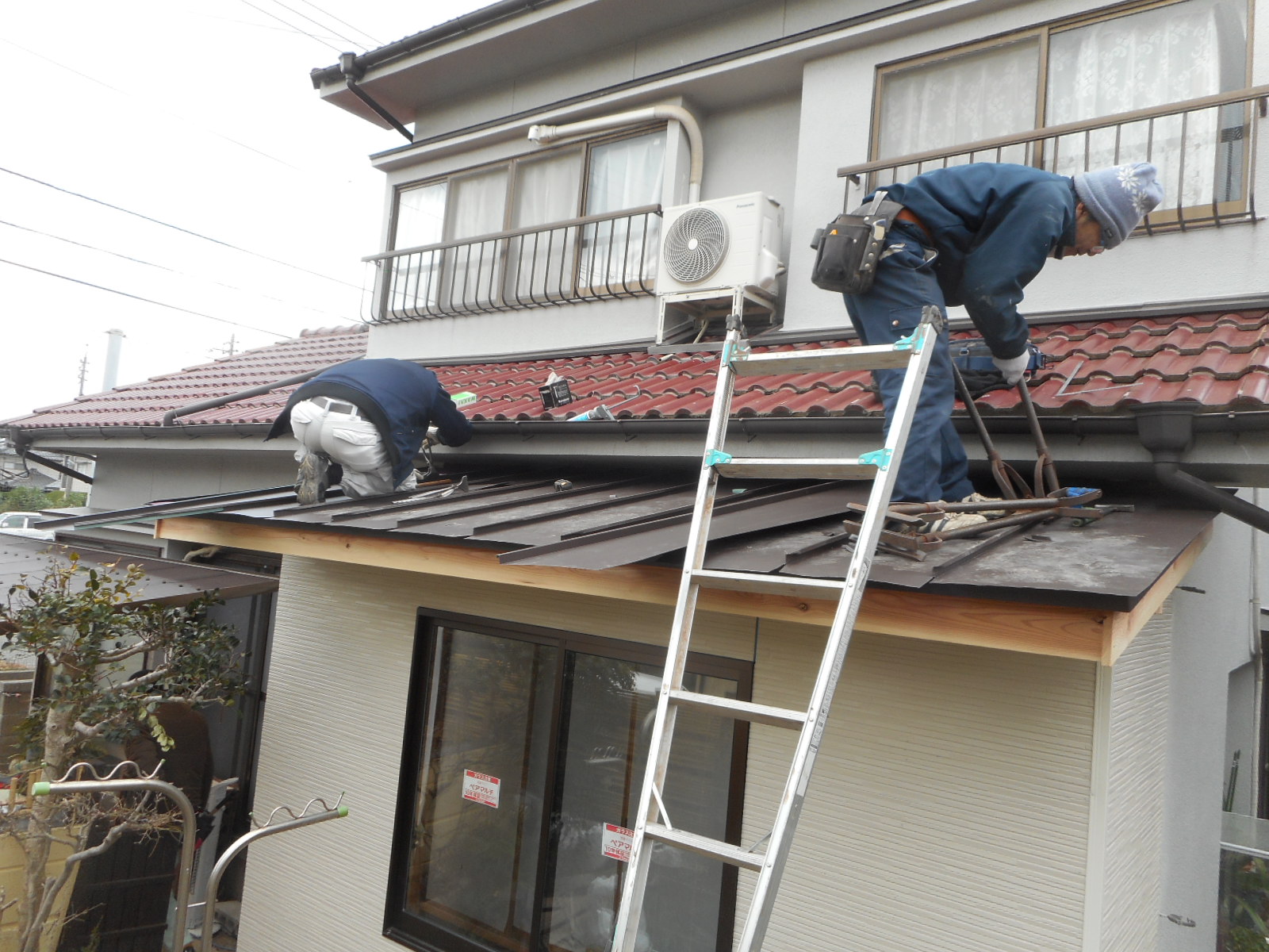 | 屋根に板金(瓦棒)を、施工します!! | 順次、板金工事をします!! |
