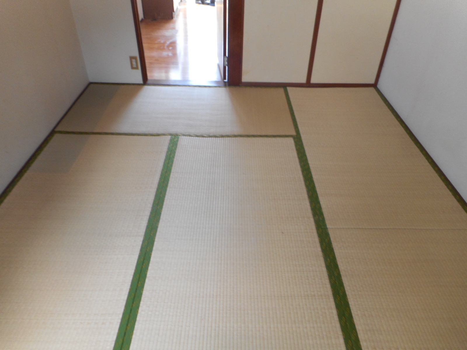 この部屋の畳はまだ新しいため、そのままにし、壁のクロスと襖の張替えをしました。