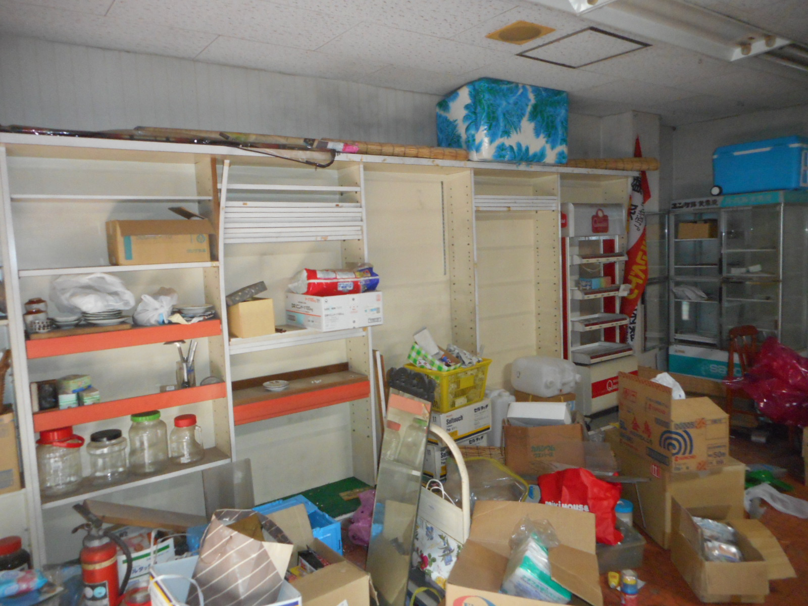 以前もここで薬局を営んでいと言うことで、当時の物がかなり残っています!! 店舗内と外との間仕切りは、ご覧の様にシャッターのみです!!<以前は壁があった様ですが>