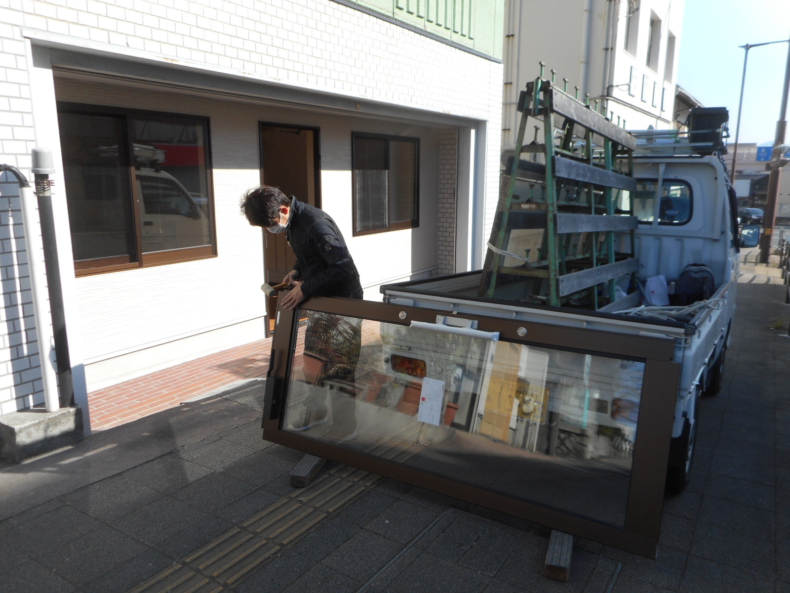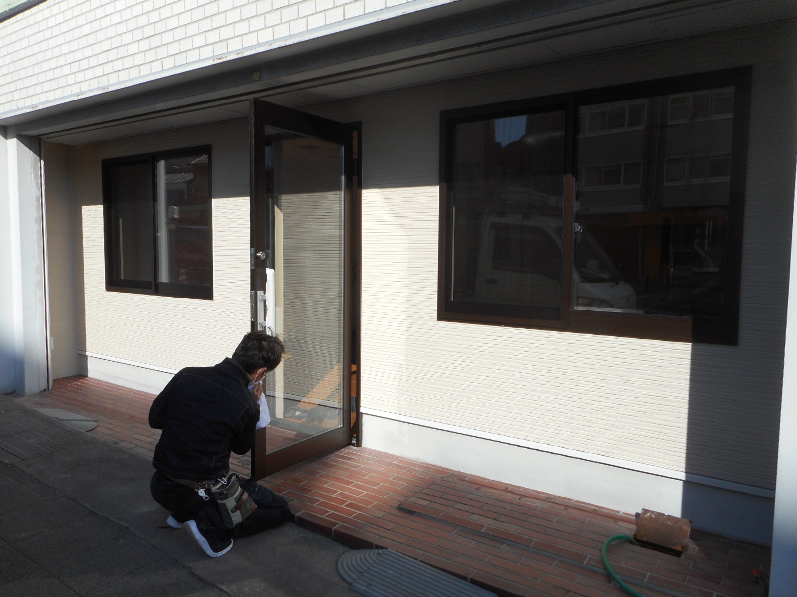 サッシの本体(障子)を収め、入り口ドアを現場で組みます!! 組み立てたドアを取付け、調整します!!