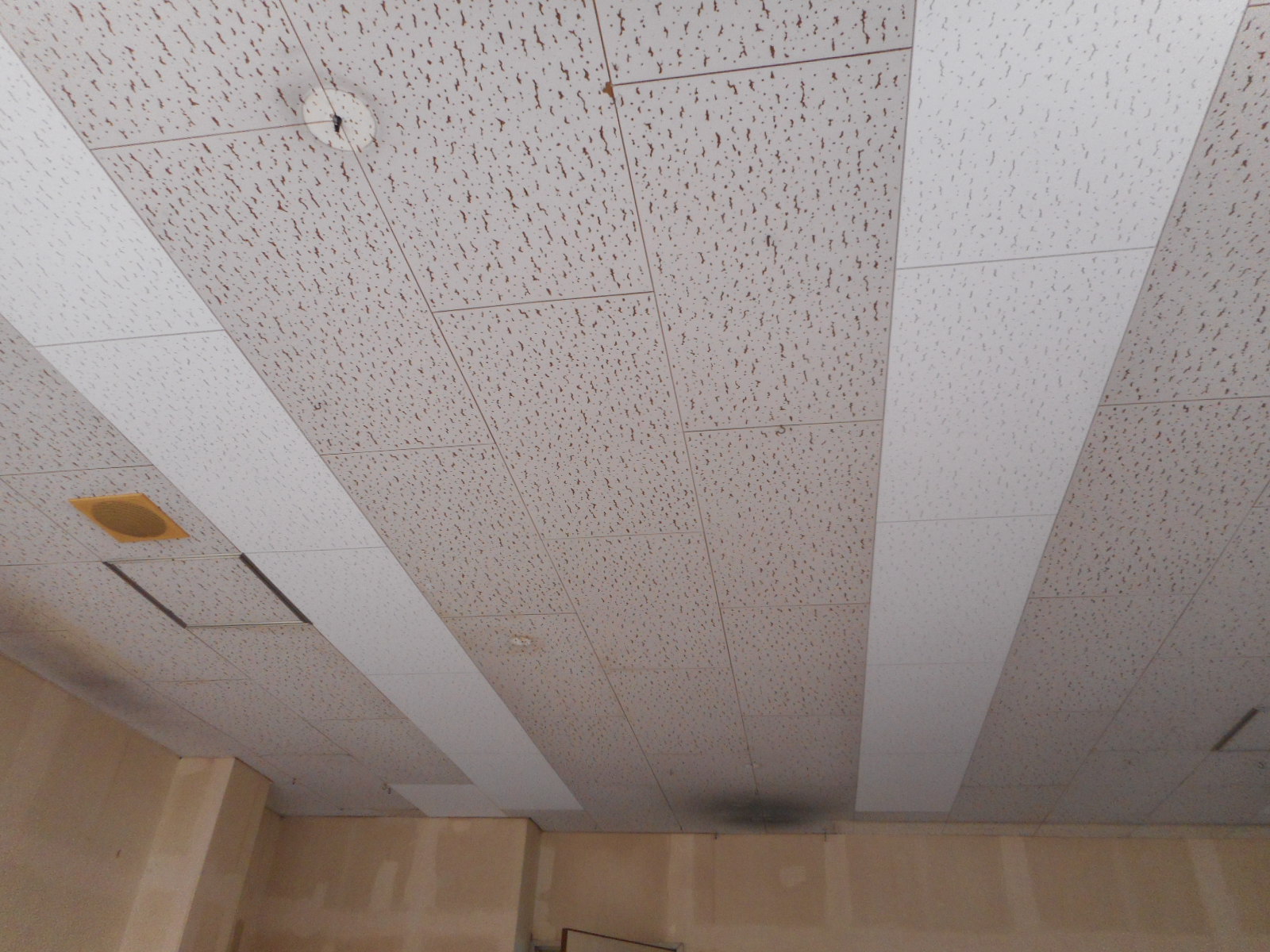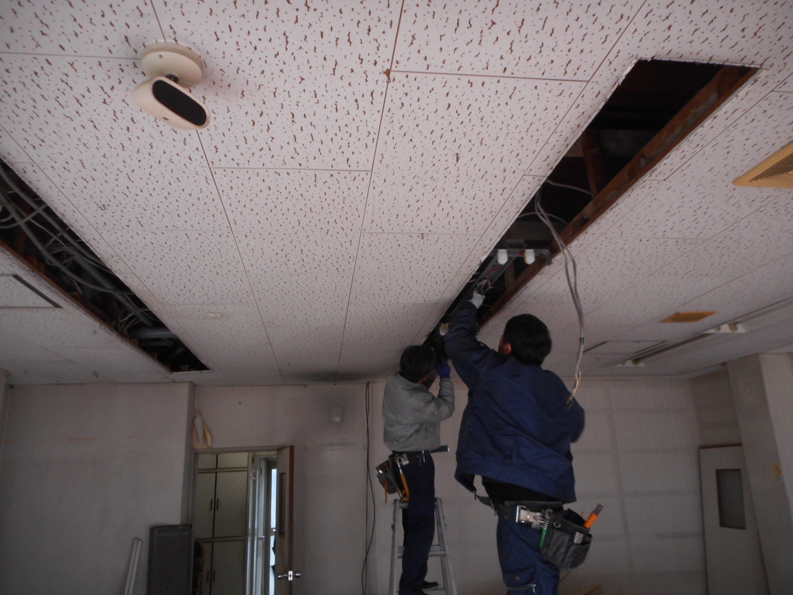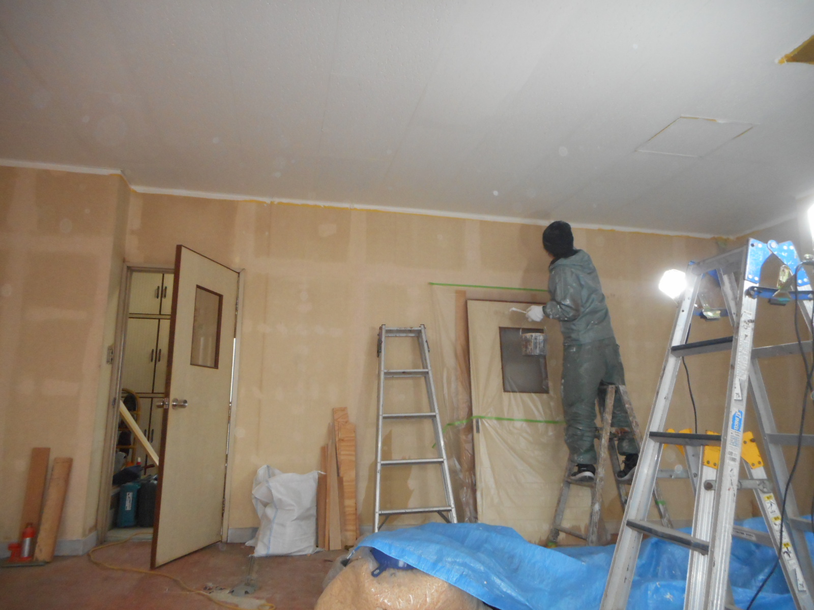 | 天井の塗装をしています!! | 塗装がおわったら、新規にLEDの照明器具を取付けます!! |