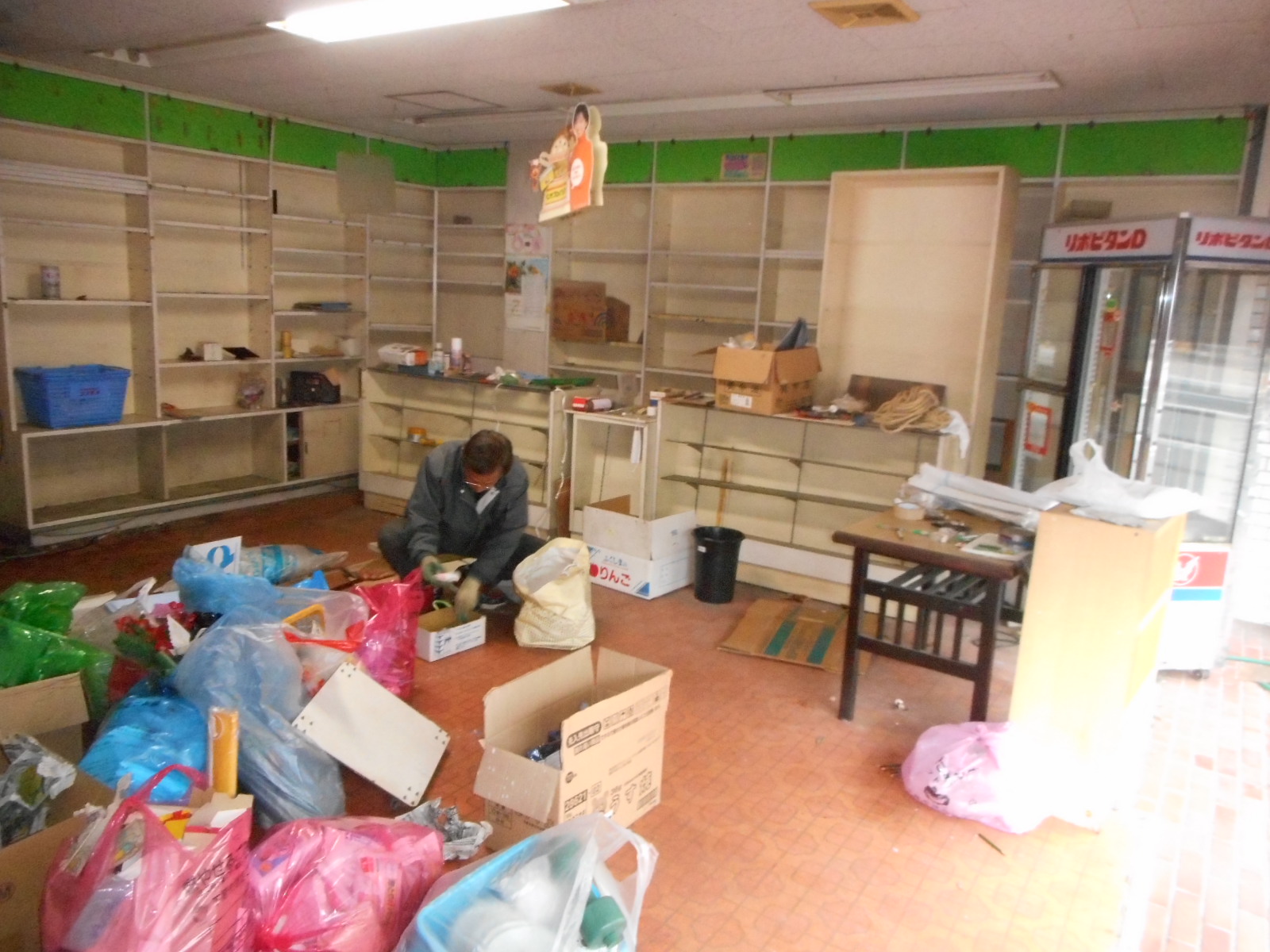 | 以前ここで薬局を営んでいた時に、そのままにしていた不用品をすべて撤去、処分します!! | 順次不用品を、撤去して行きます!! |