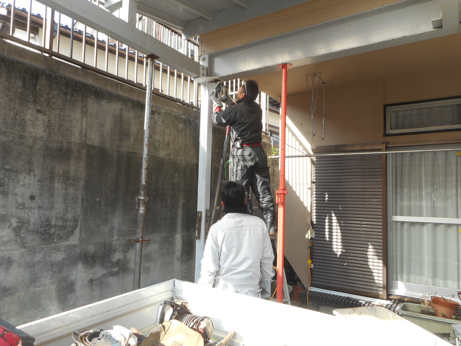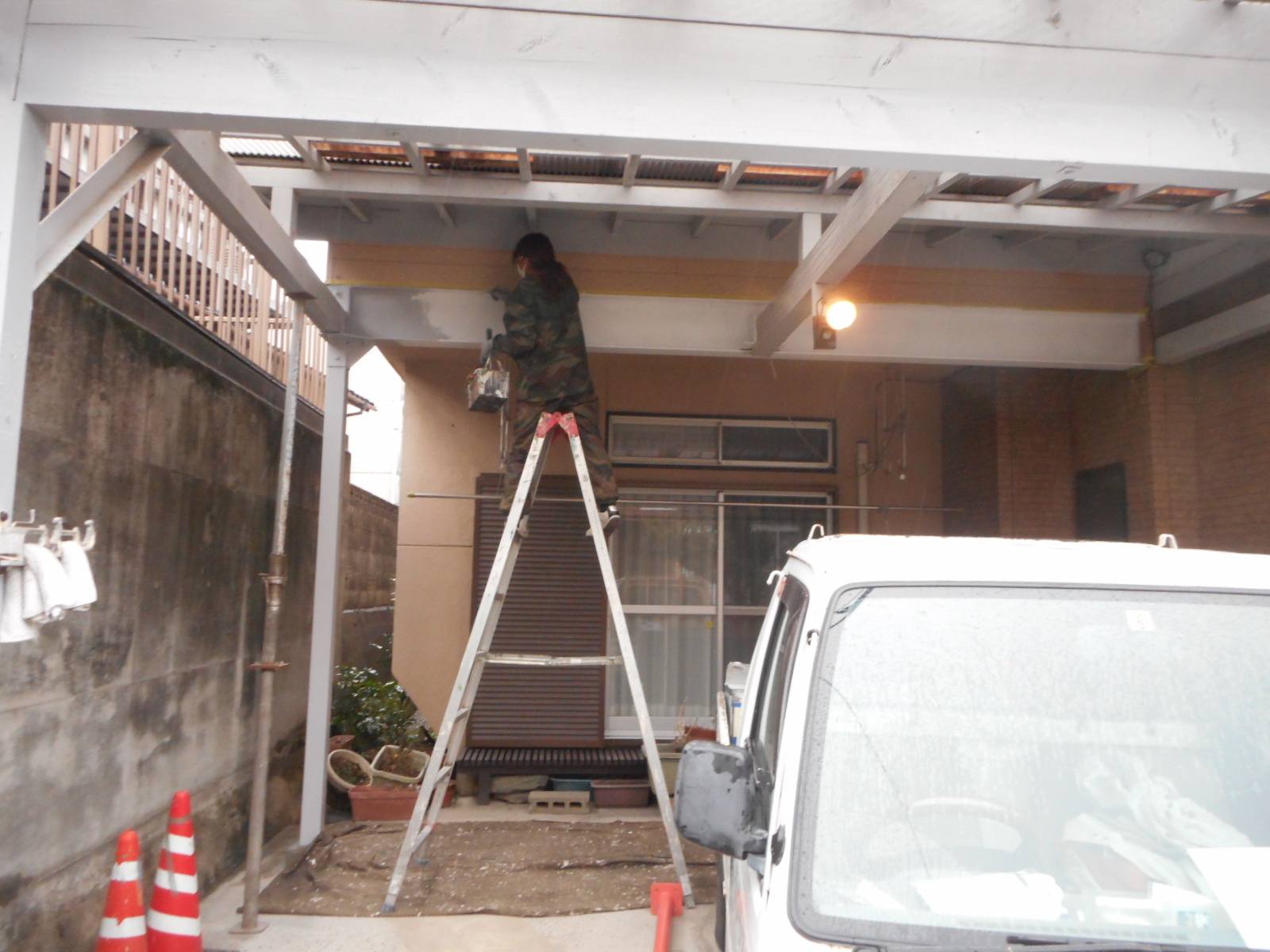 | 最後に桁も、きれいに塗装します!! | これで上のサンルームも、安心です!! |