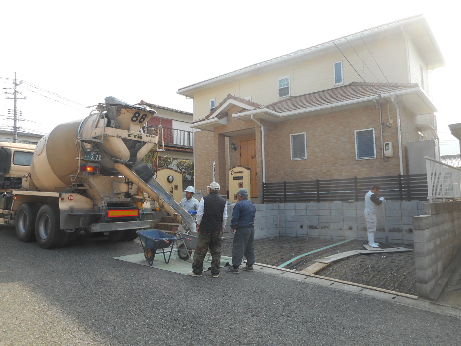 | 生コン車が到着しました!! | 生コンを打って行きます!! |