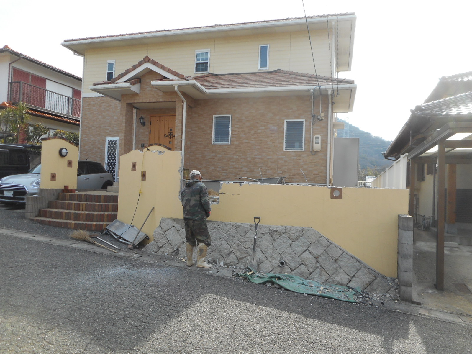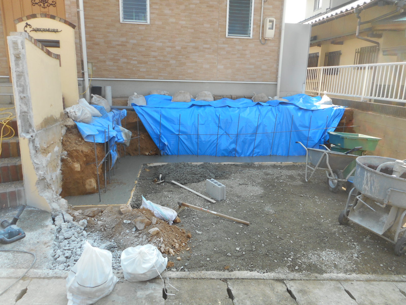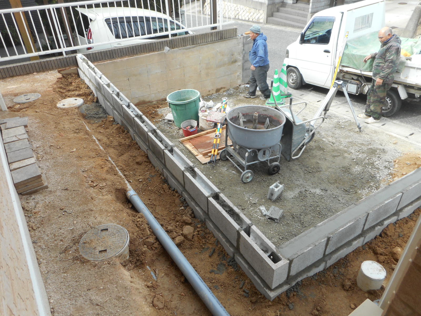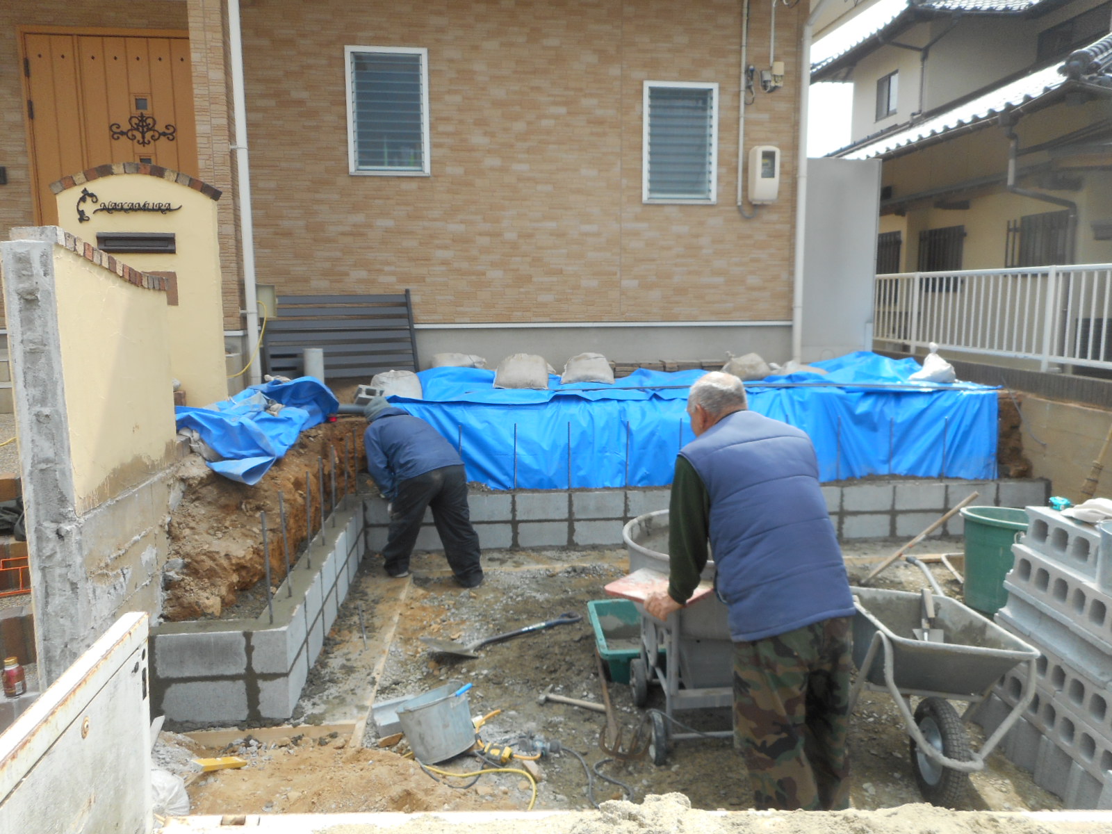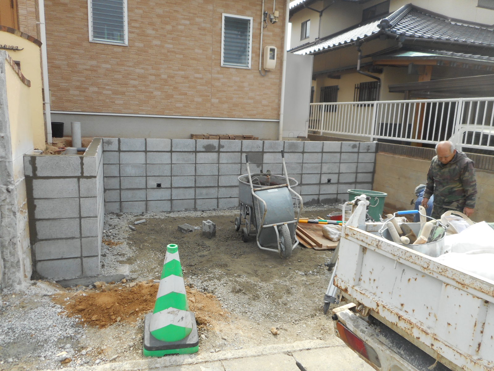 | ブロック積みが、はぼ完了しました!! | 最上段は12cmブロックを、施工しました!! |