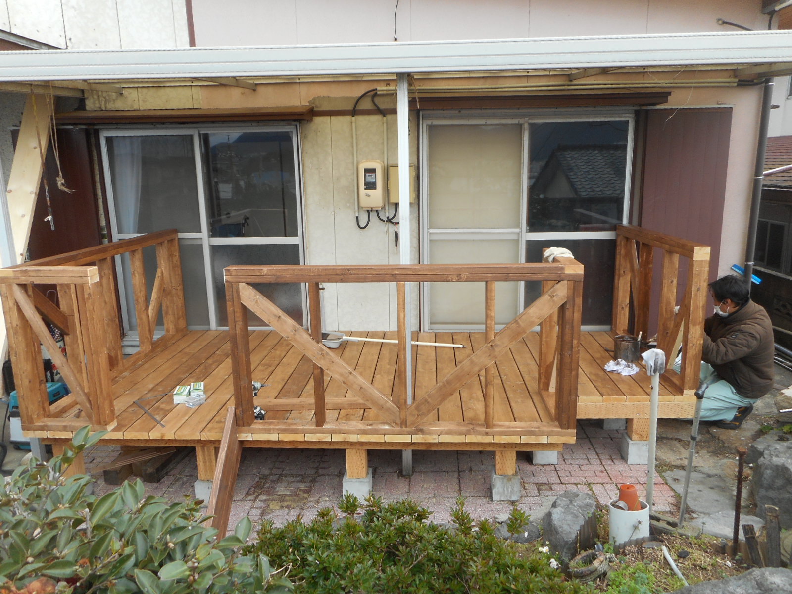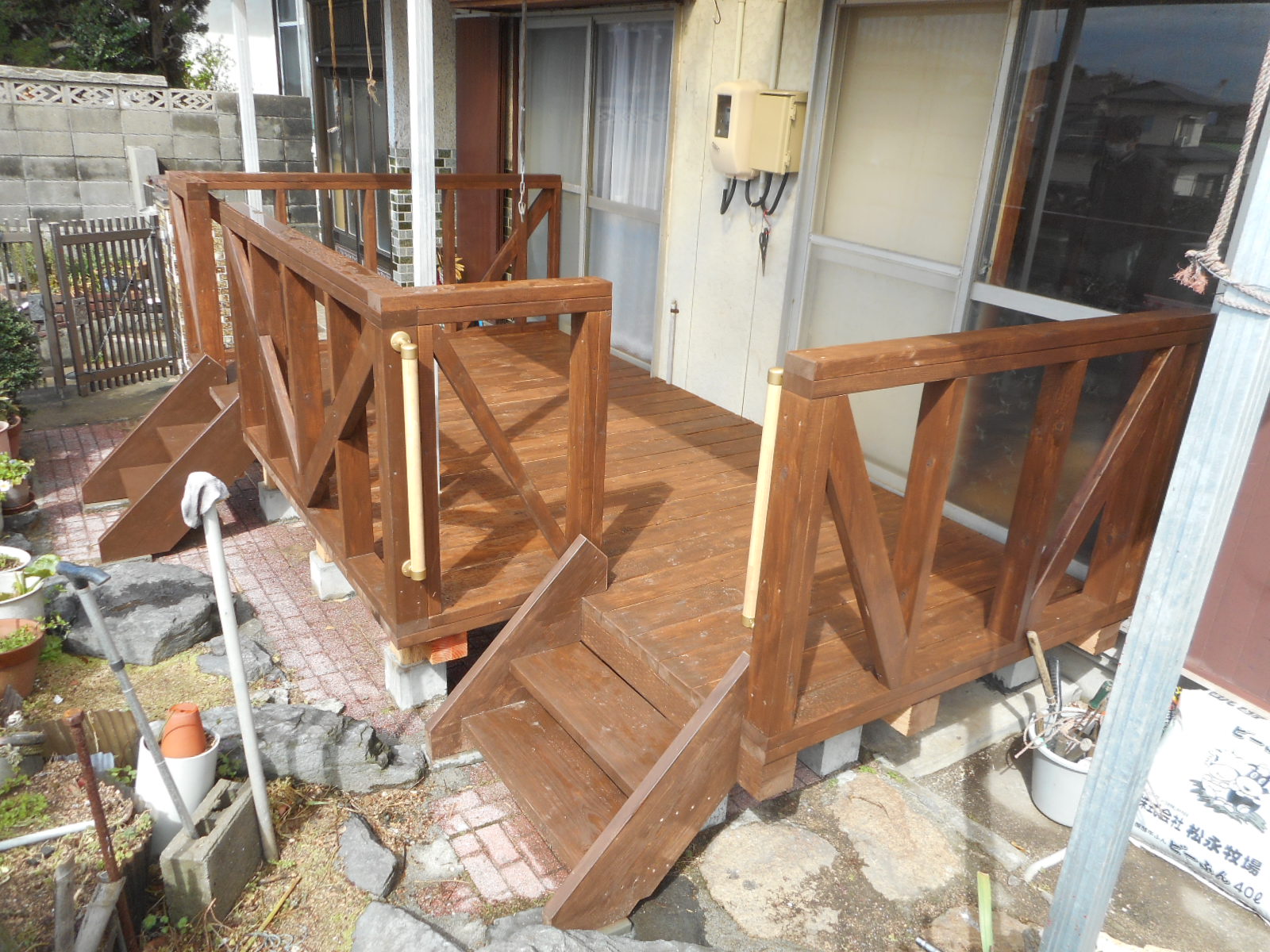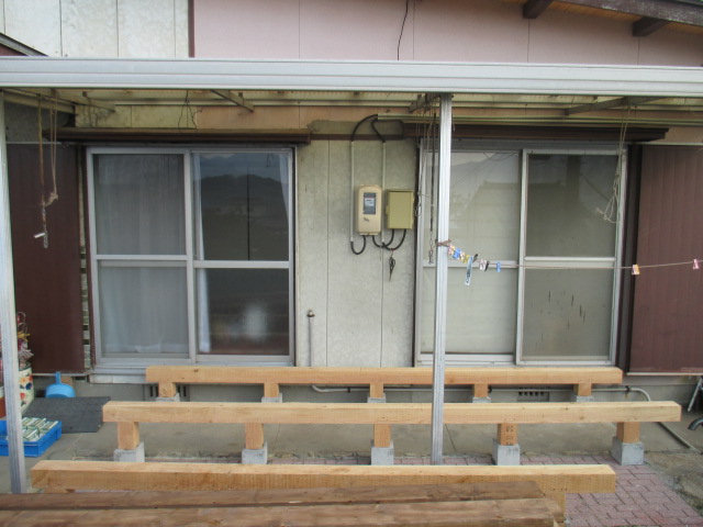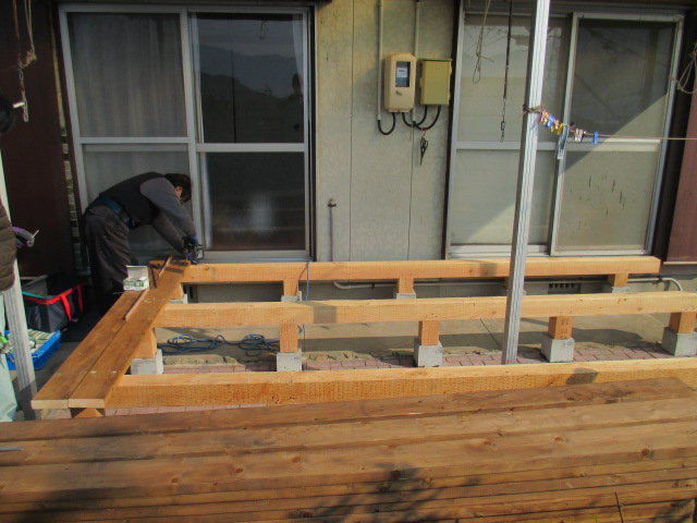 車イスから落ちない様に、手摺りを施工しました!! 階段を2箇所、造ります!!