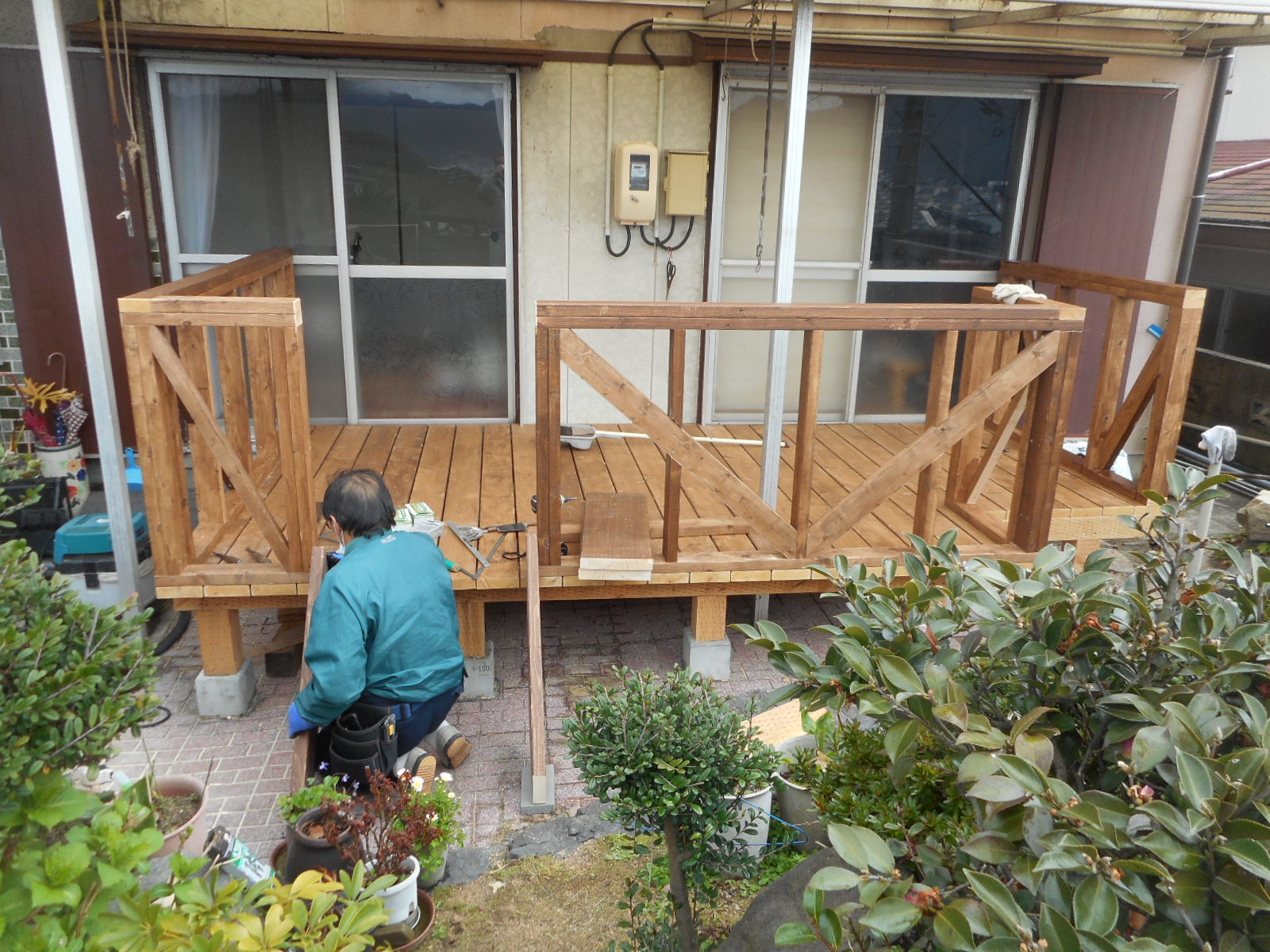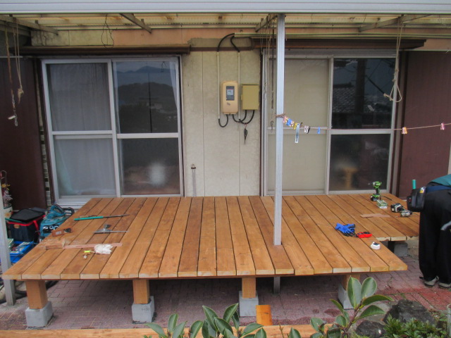 ◎先日彦島某邸で、ウッドデッキの新設工事を行いました。