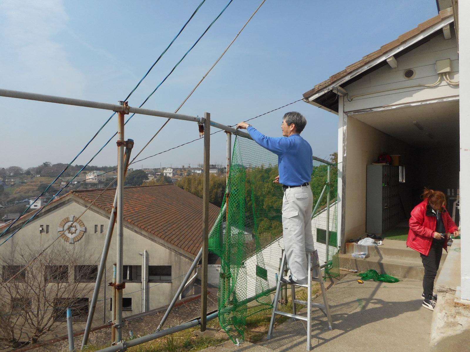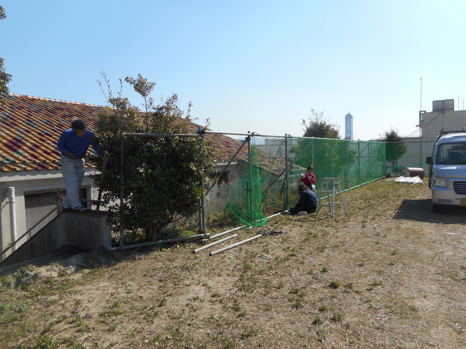 | 順次ネットを、張って行きます!! | 最後の部分の、ネットを張ります!! |
