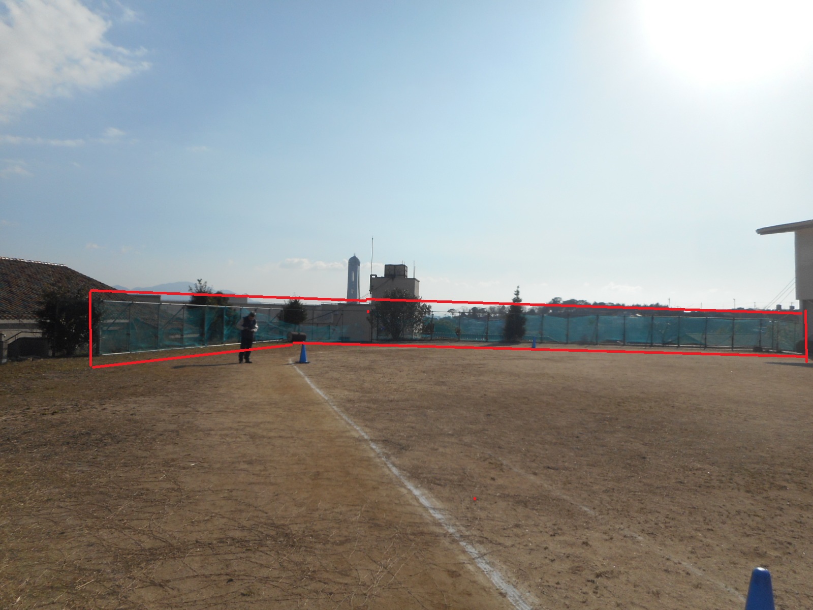 赤線で囲った部分の防護ネット(約54m)の状態が非常に悪いために張替えます!!