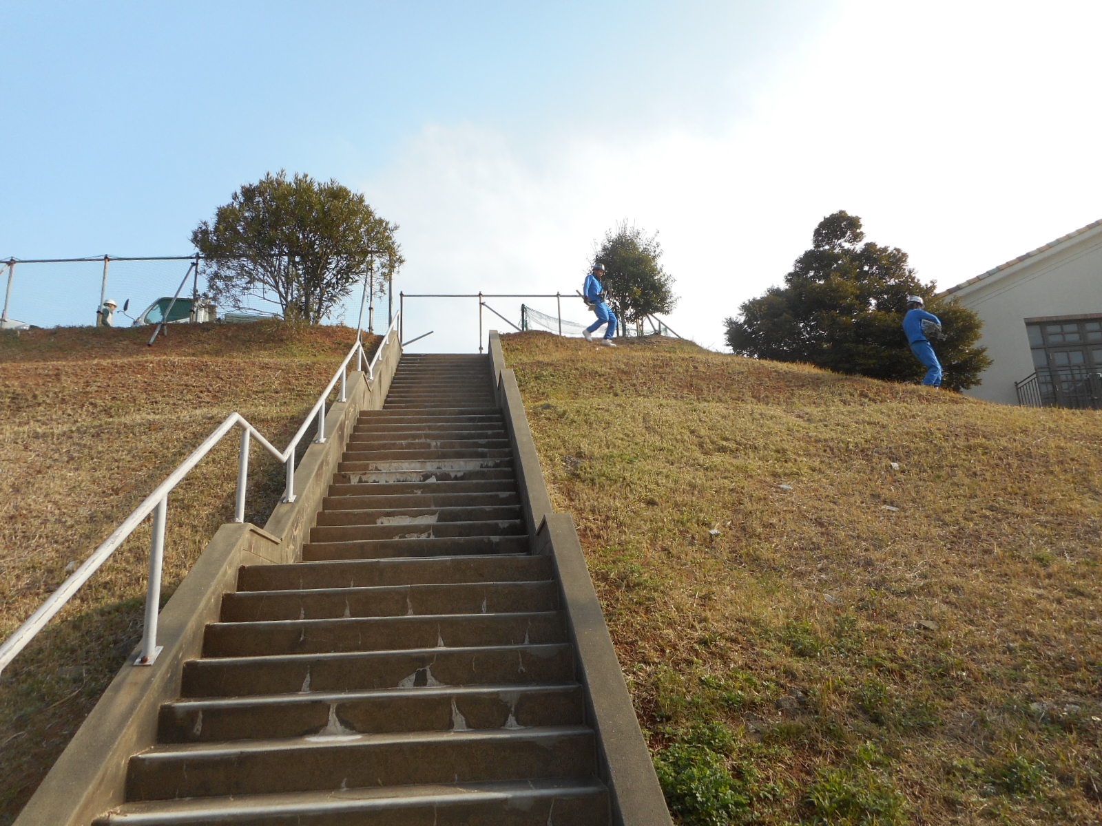 | 上のグランドから、部材を運びます!! | かなりの距離を、運びます!! |