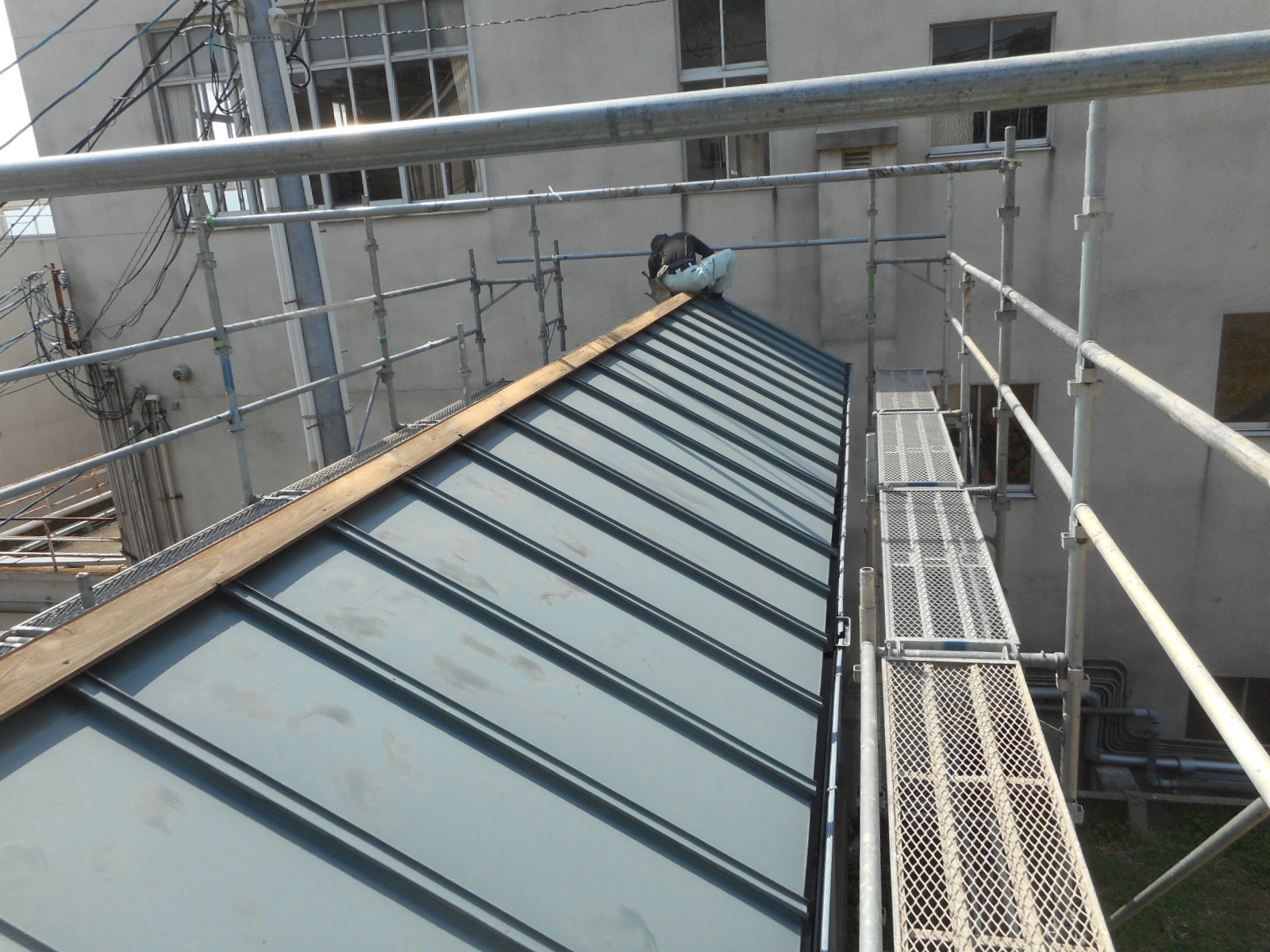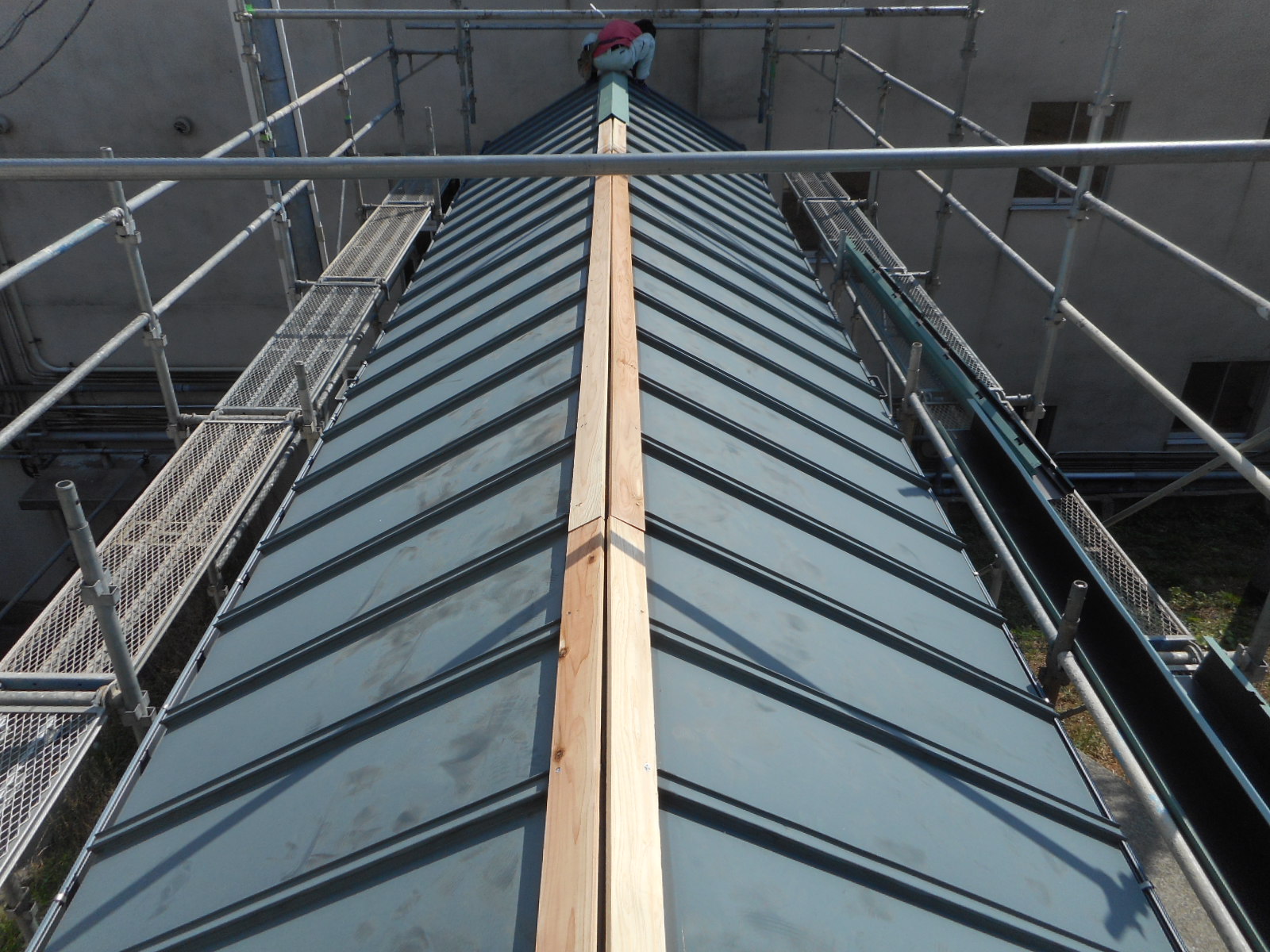 棟の板金を全面下地から張替え、屋根全体を塗装することにしました。