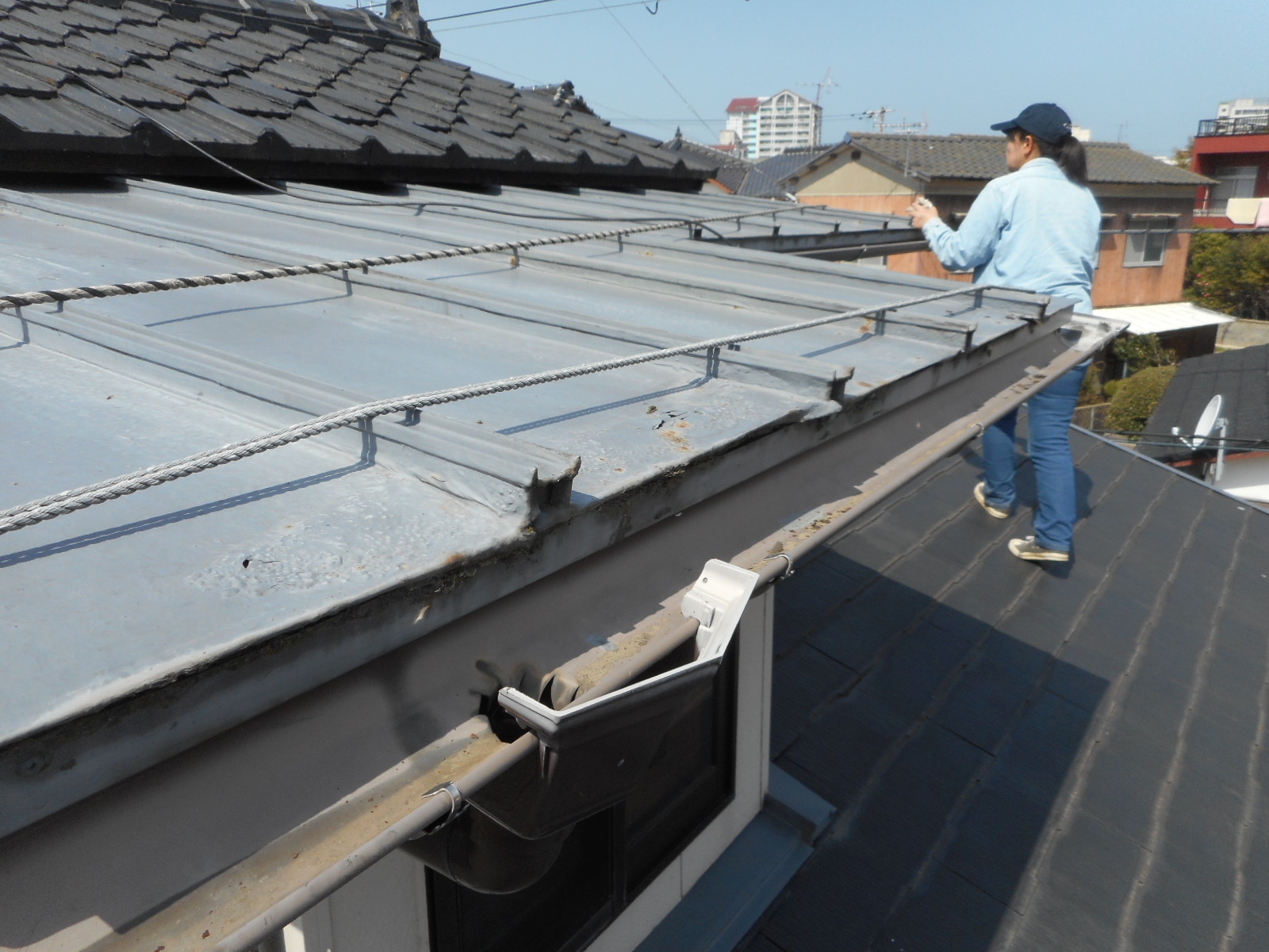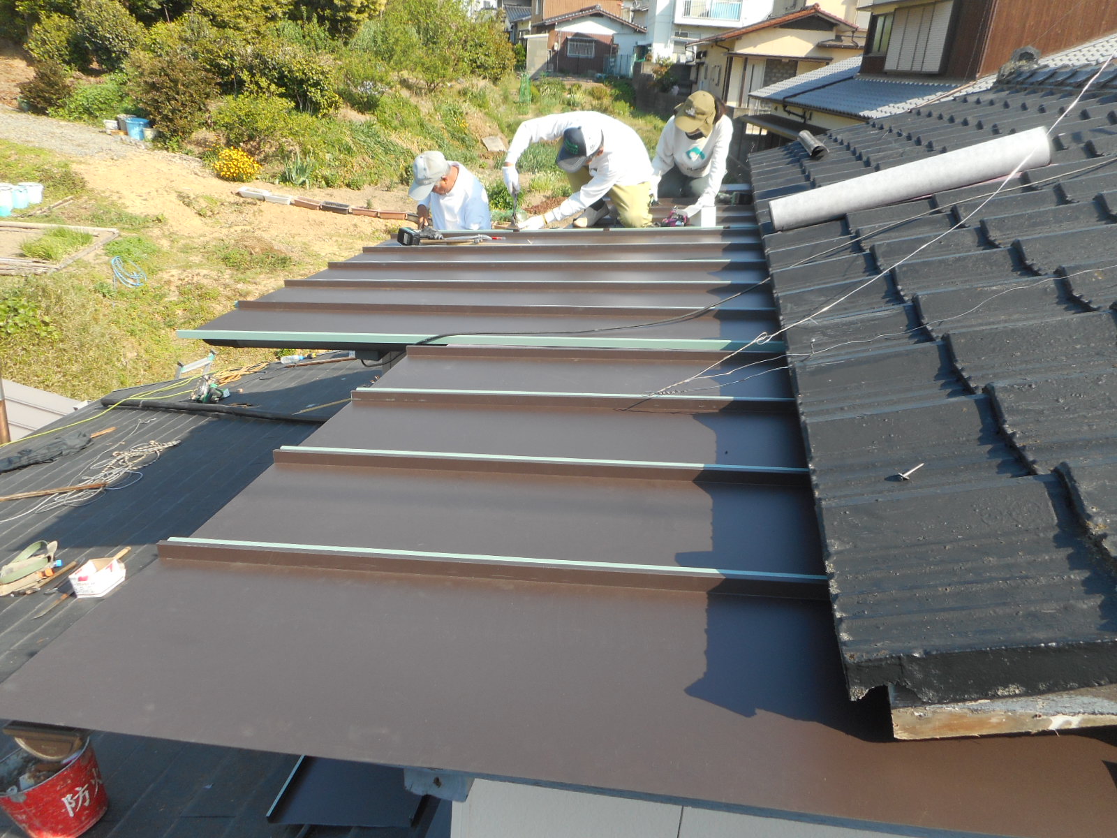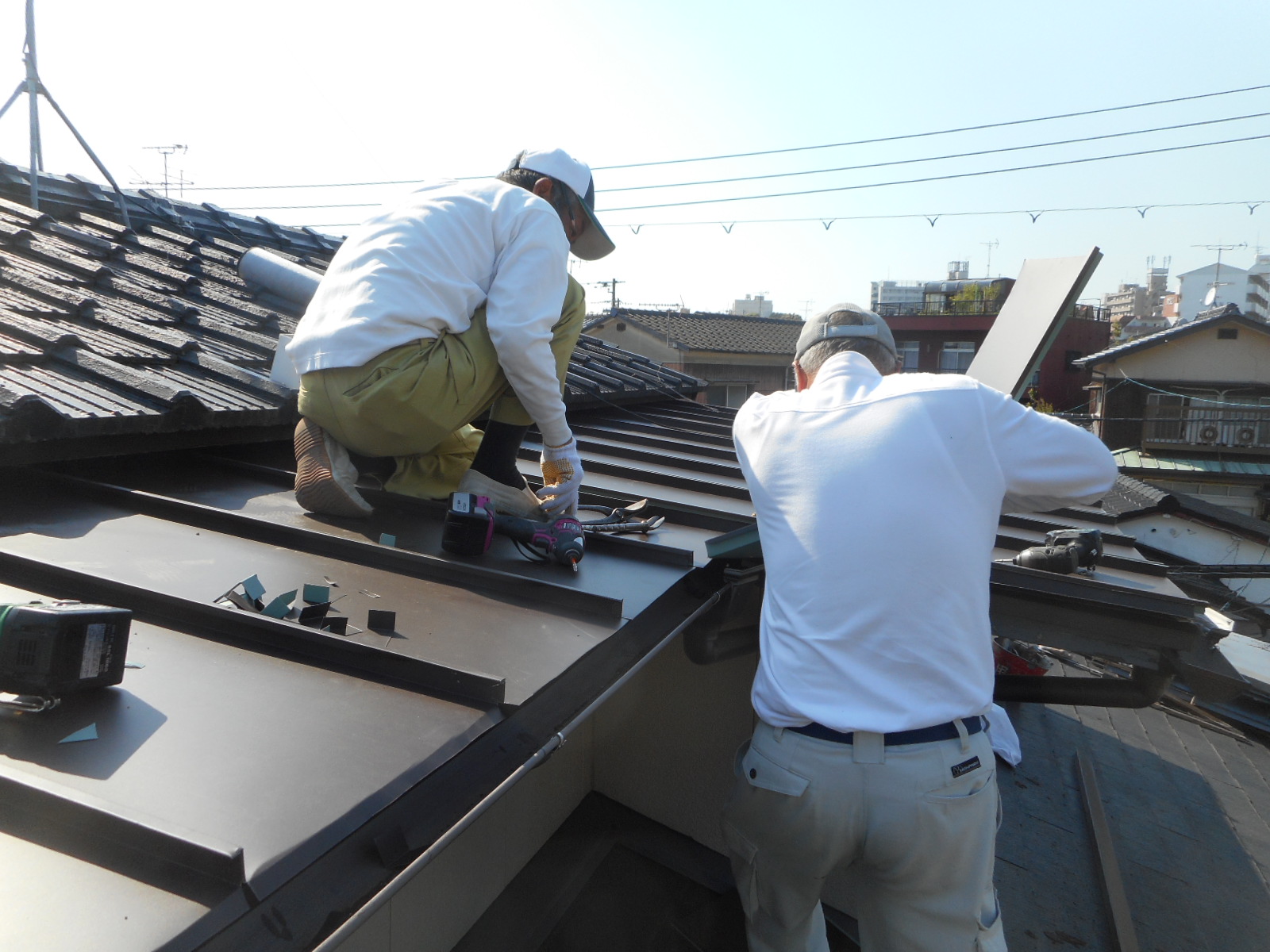 | 作業の準備をしています!! | 既存の瓦棒を解体、撤去します!! |