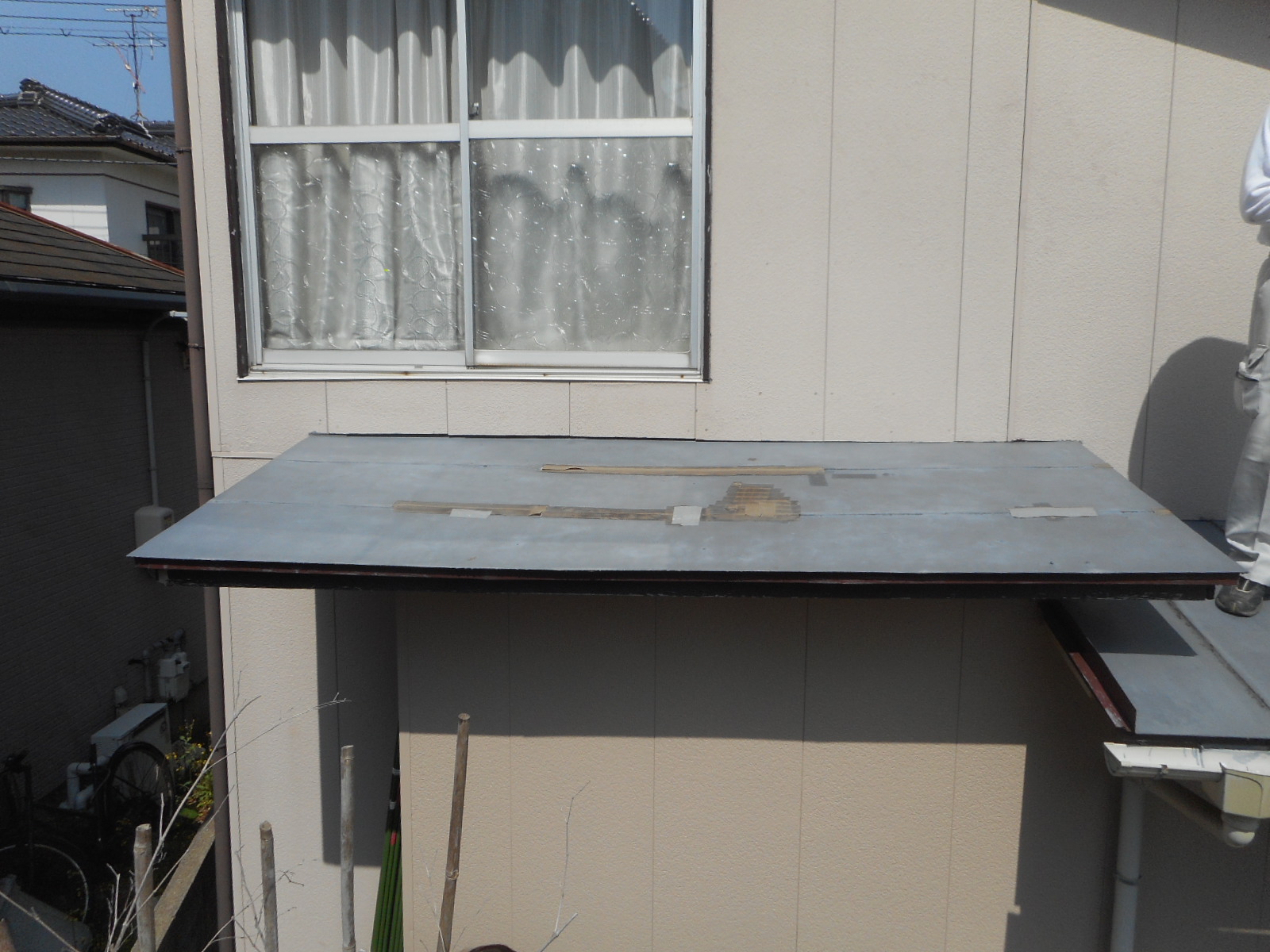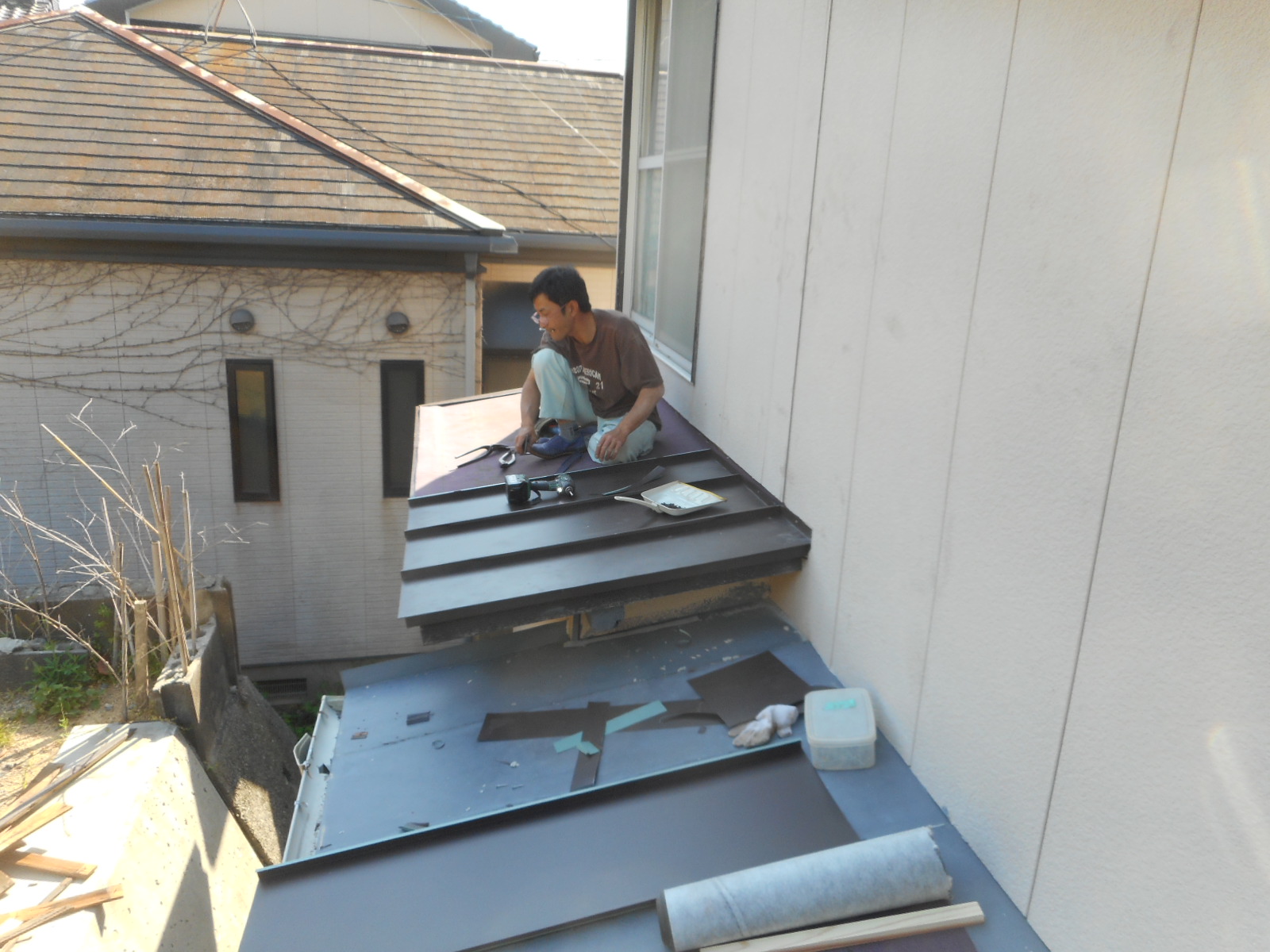 赤線□で囲った上の部分の瓦棒と下の板金の状態が悪いので張替えました。