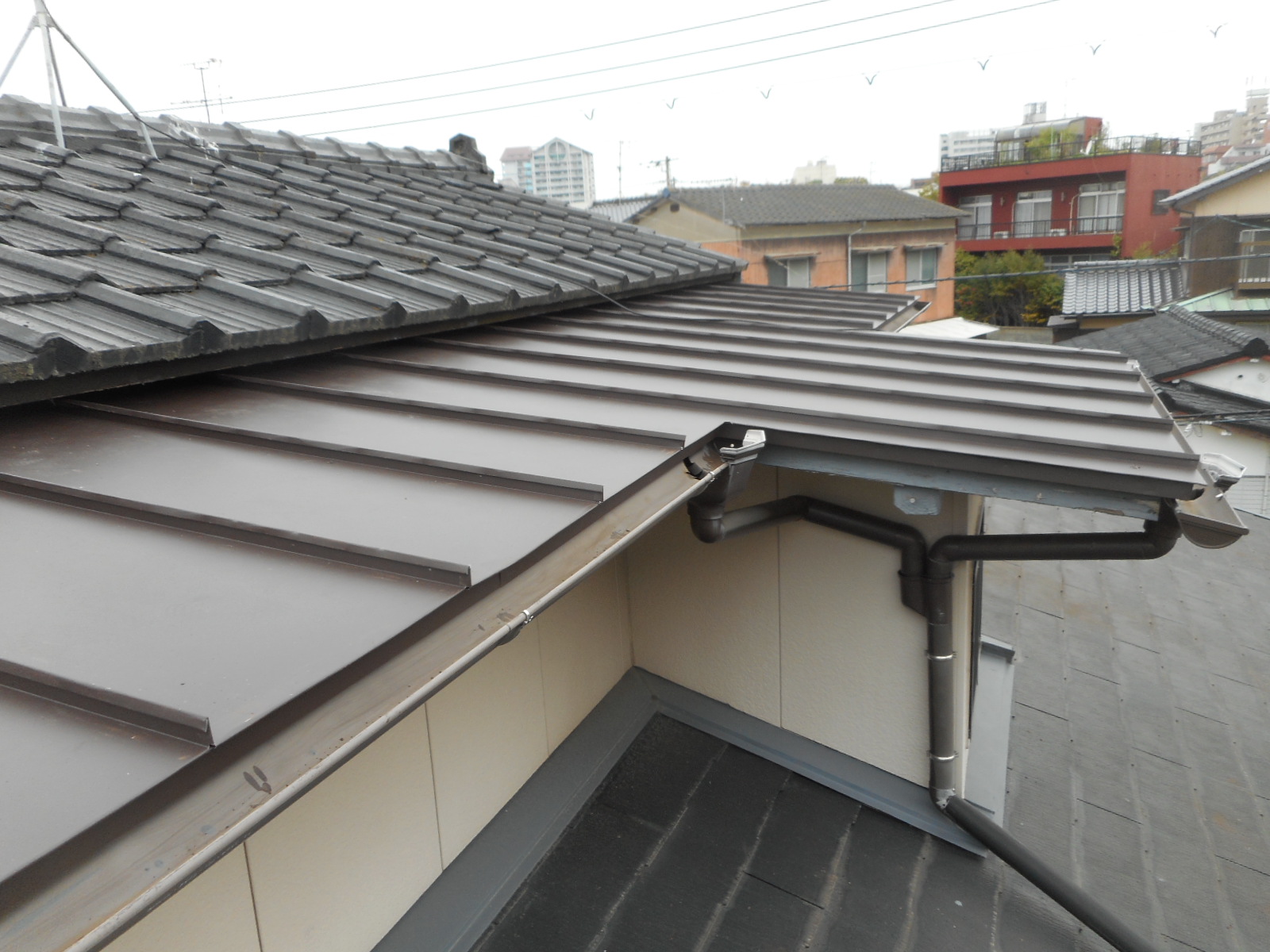 先日幡生宮の下町で、瓦棒屋根と板金屋根の張替え工事を行いました。