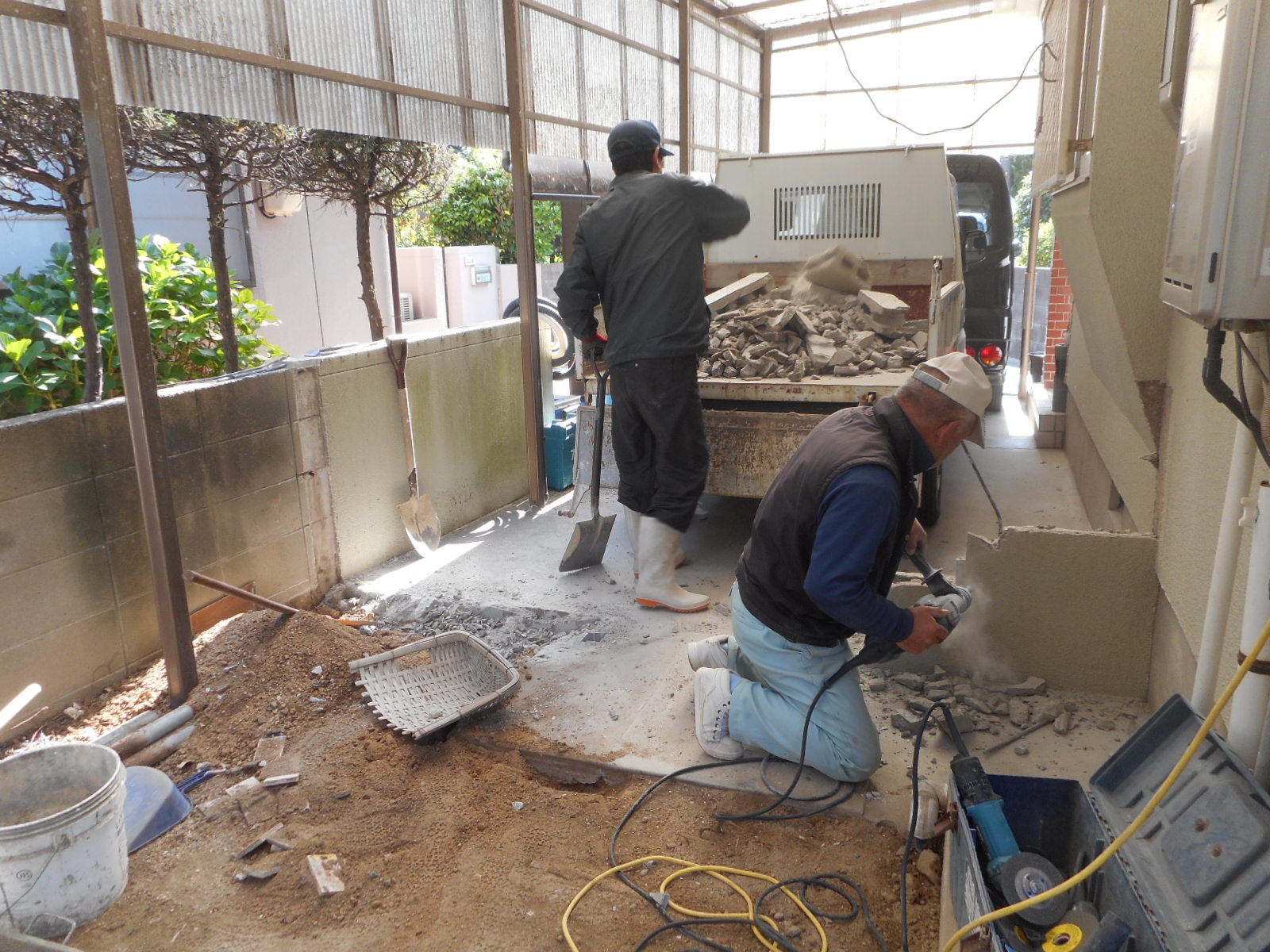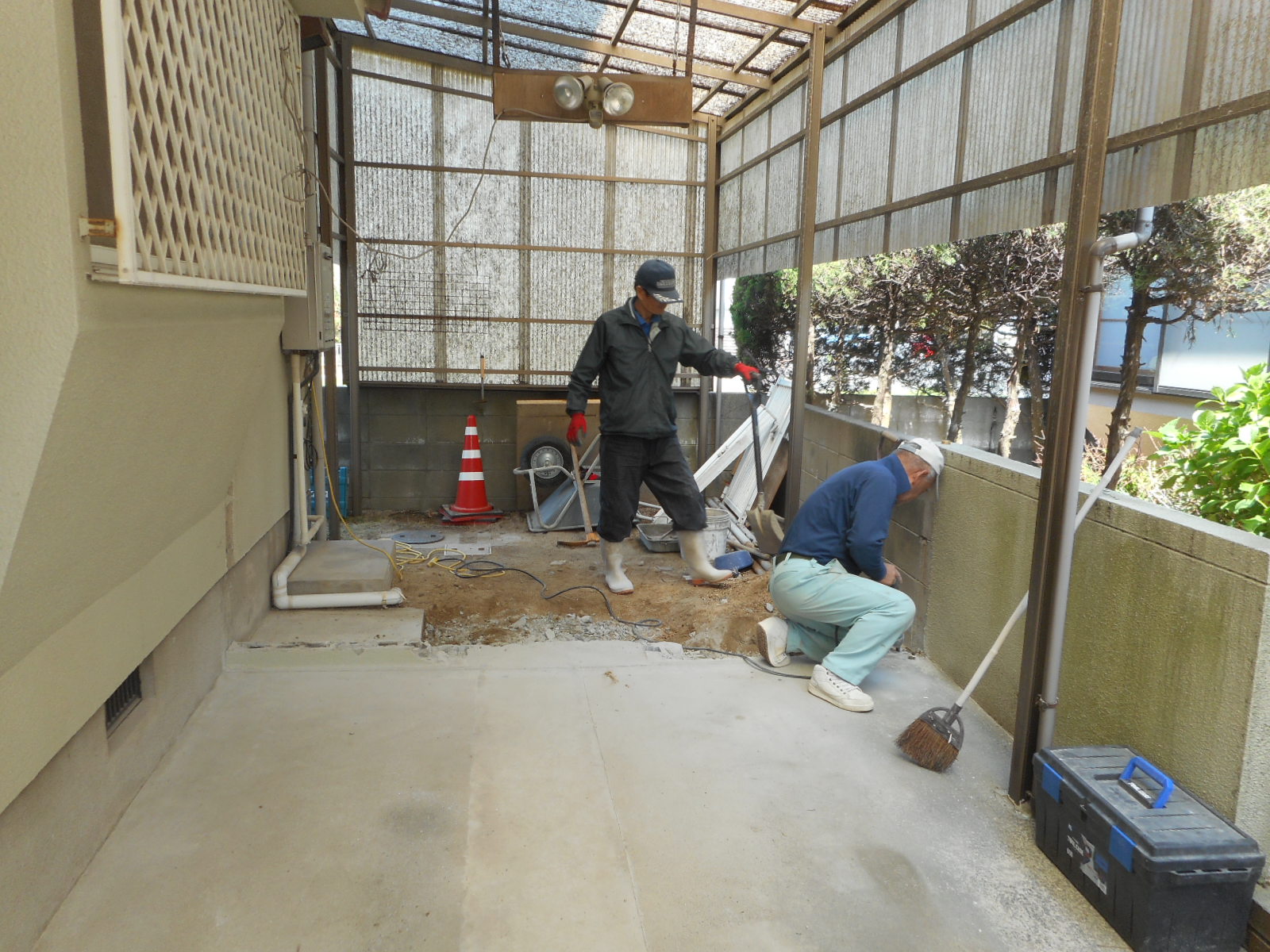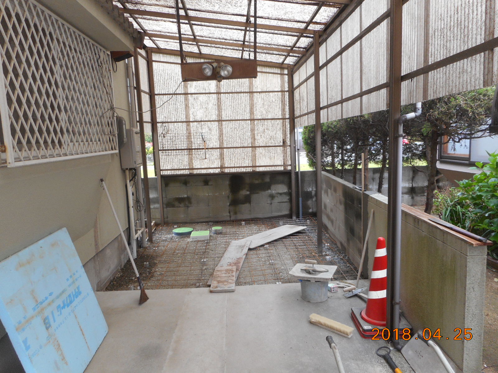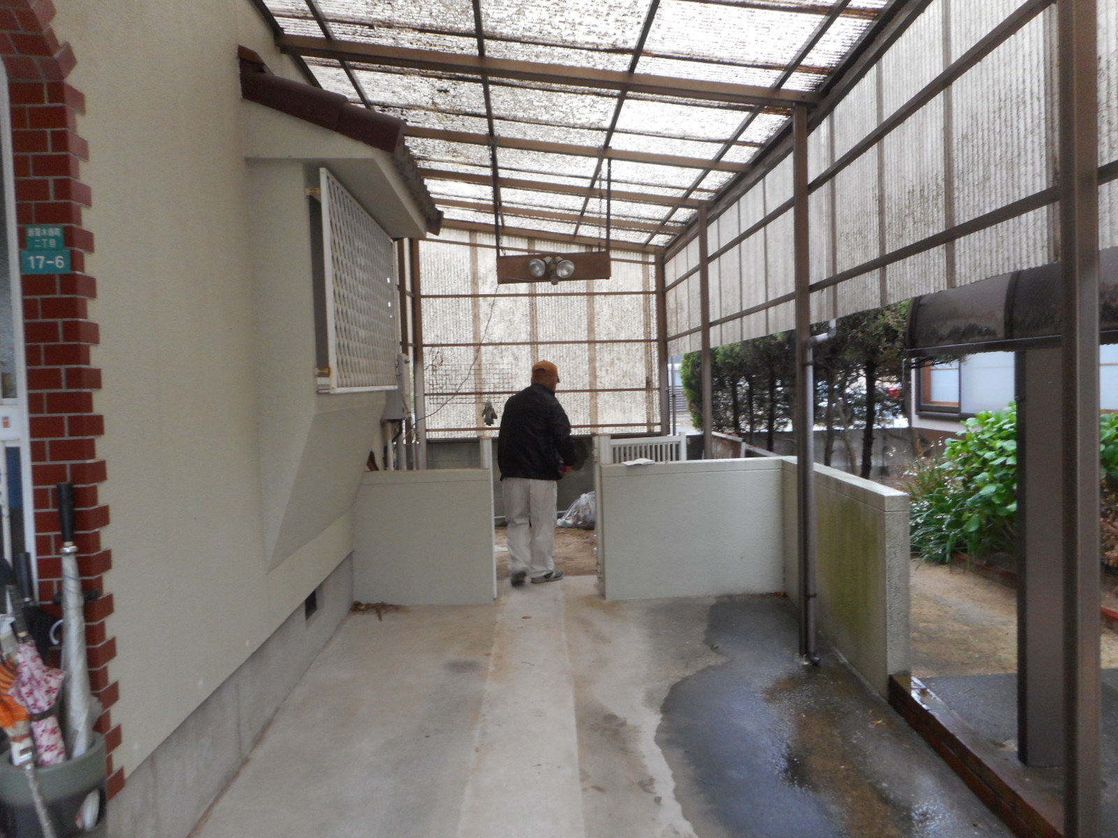 現在1台しか車を止めることが出来ないので、後の壁を撤去し2台駐車出来る様に改修しました。