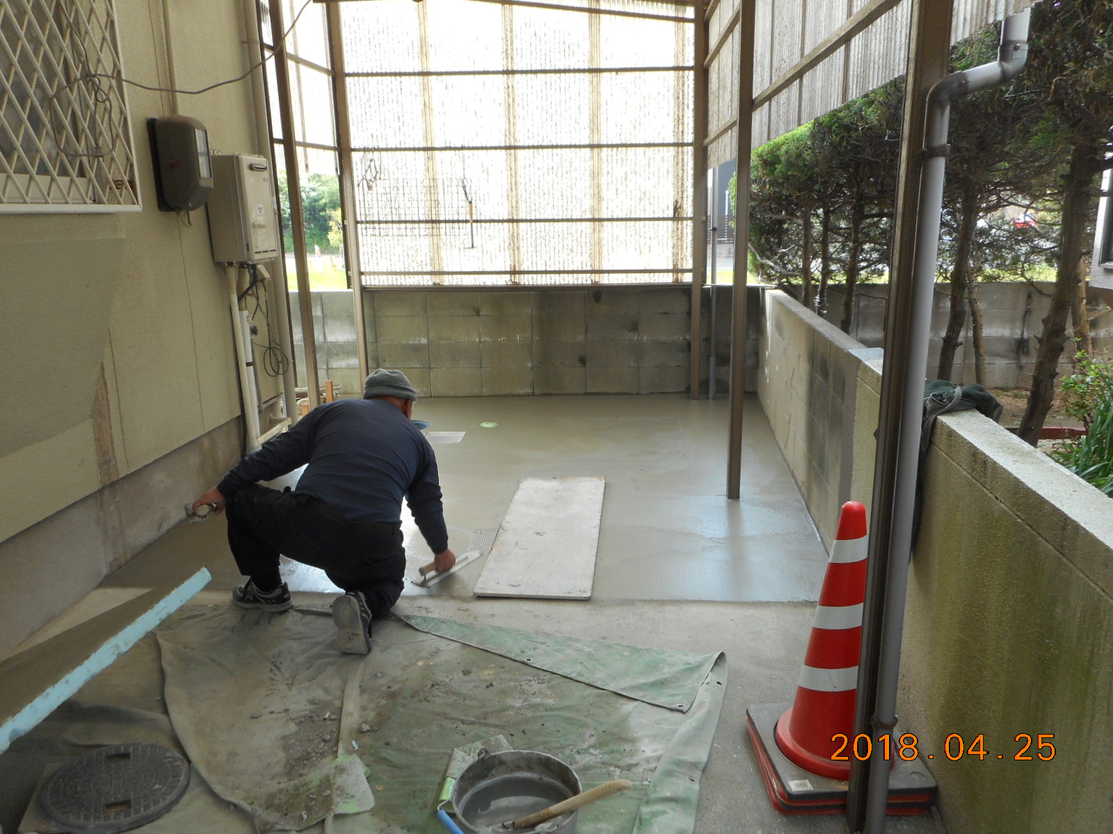 | 整地をし、ワイヤメッシュを敷きました!! | 生コンを打設し、コテ仕上げをします!! |