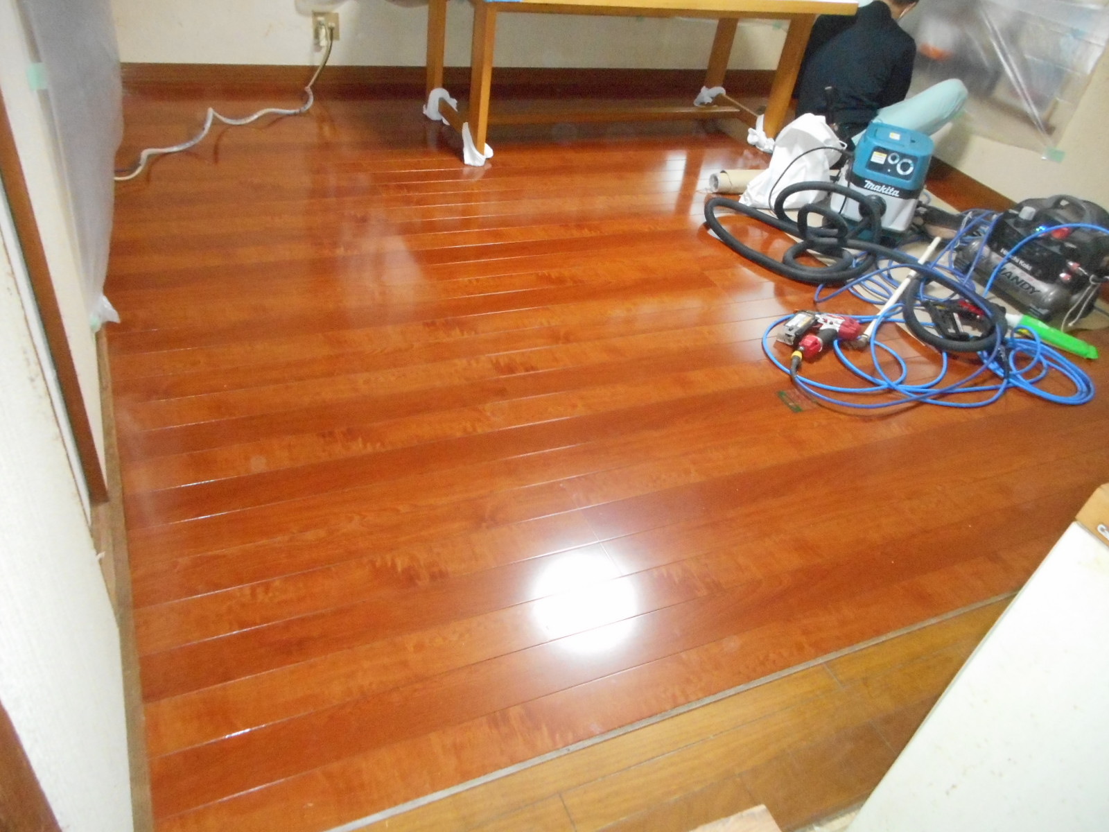 床のいたるところがブカブカするので、既存上部より新規のフロア材を施工しました。