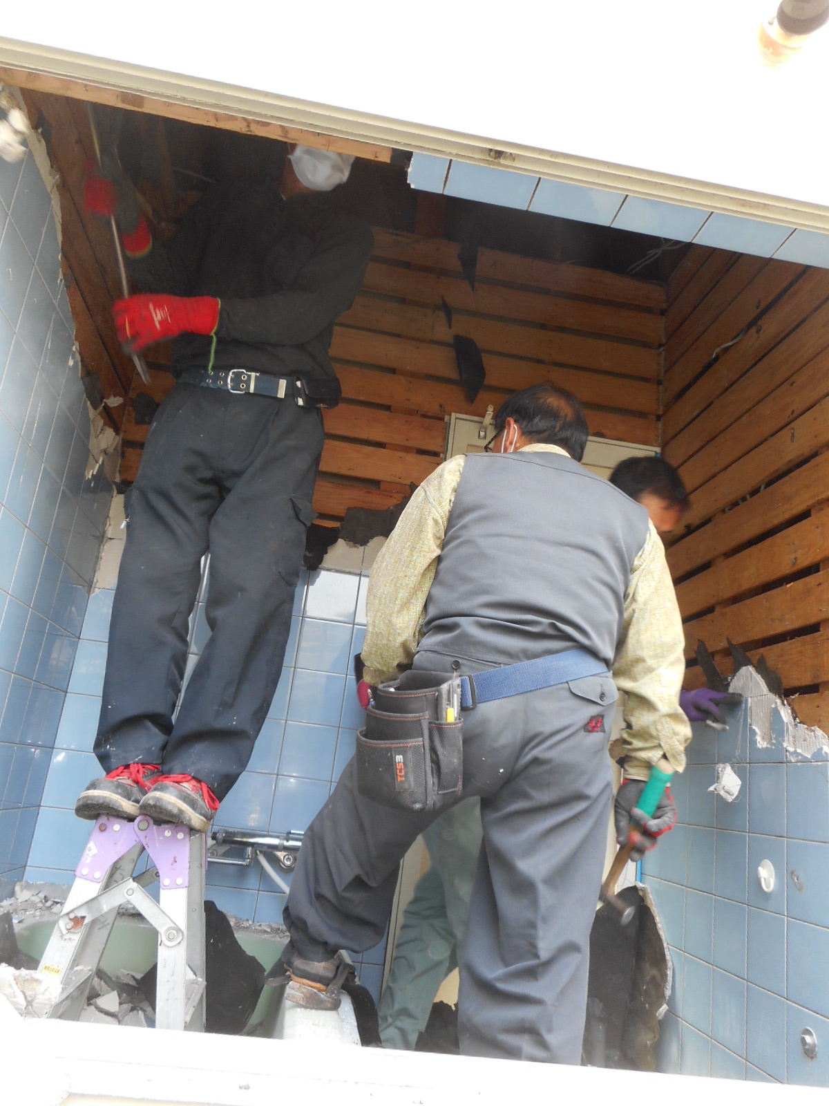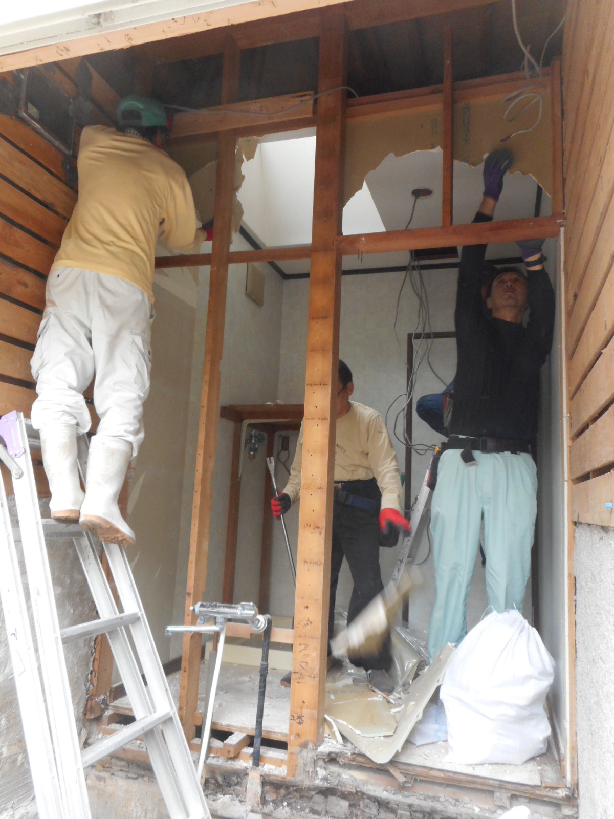浴室の解体が、ほぼ終わりました!! 脱衣所側の壁も、解体します!!