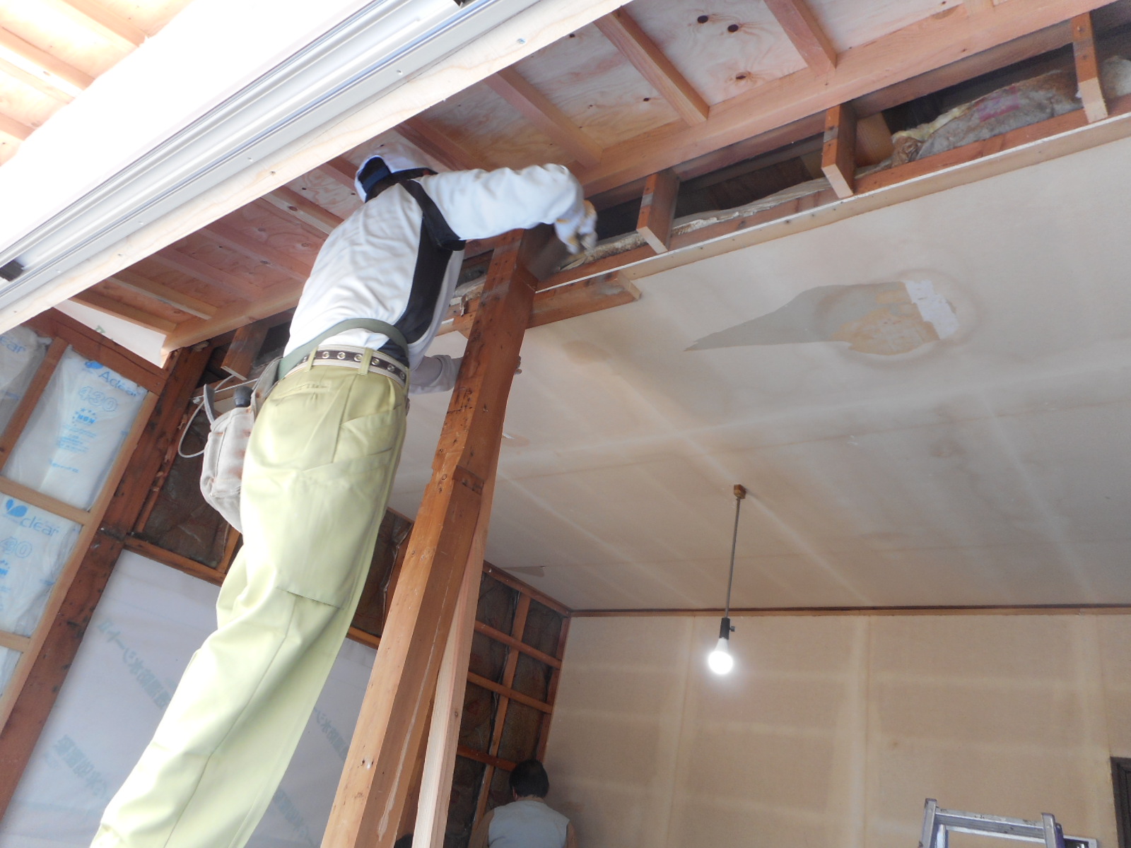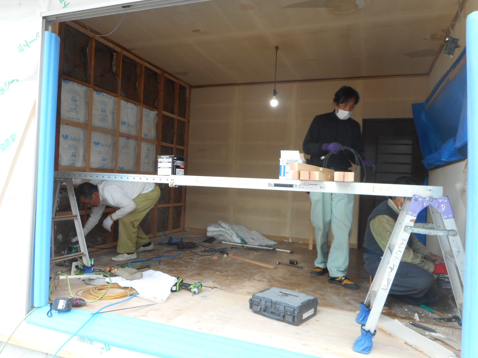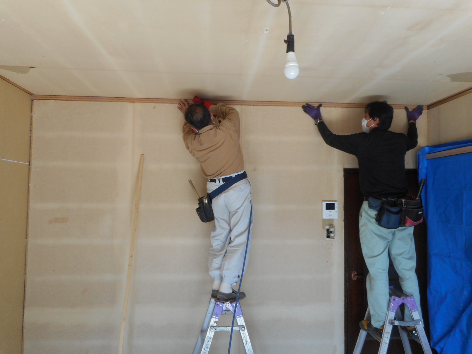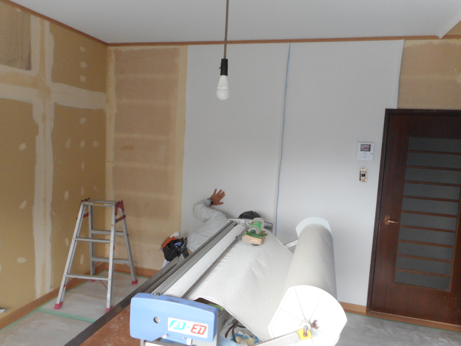| 天井に、クロスを張りました!! | 壁廻りも、クロスを張って行きます!! |