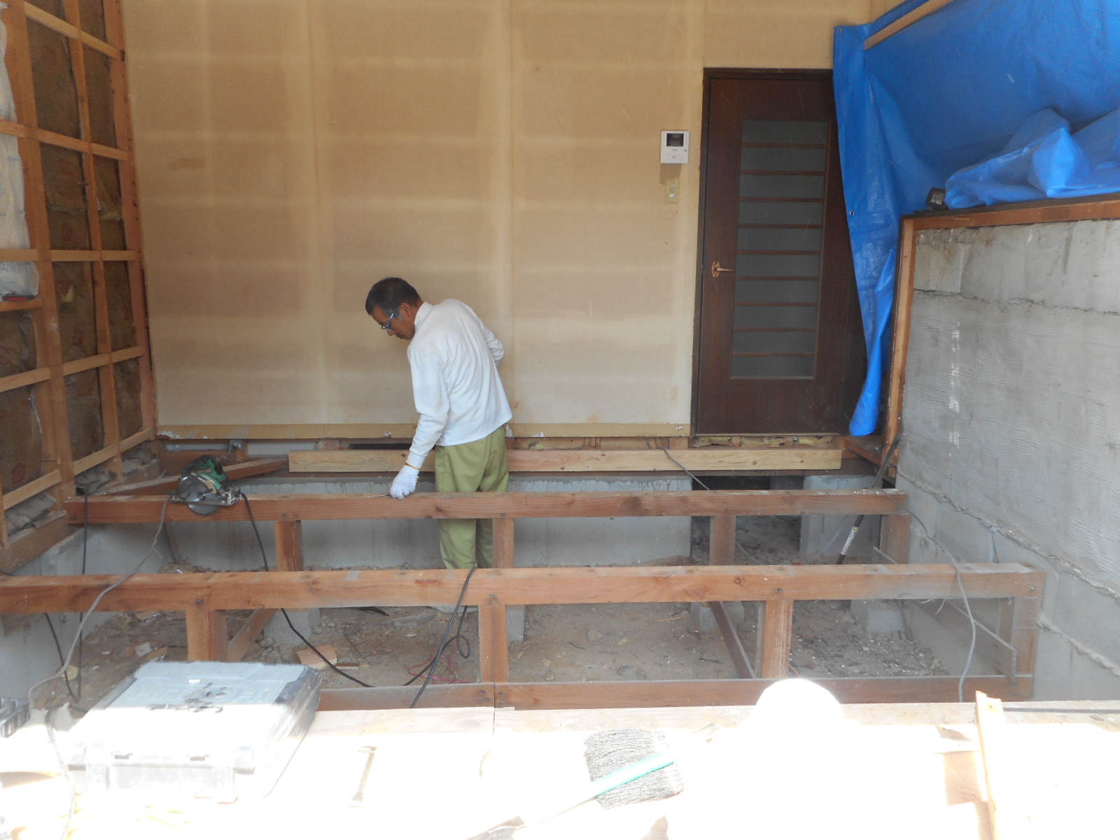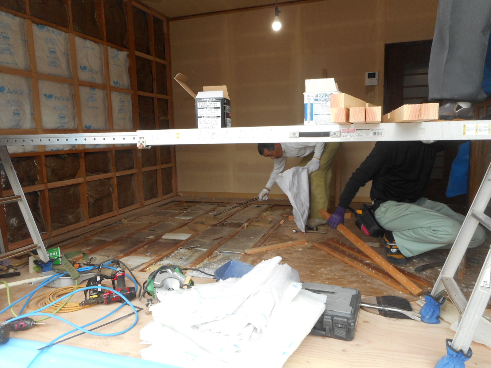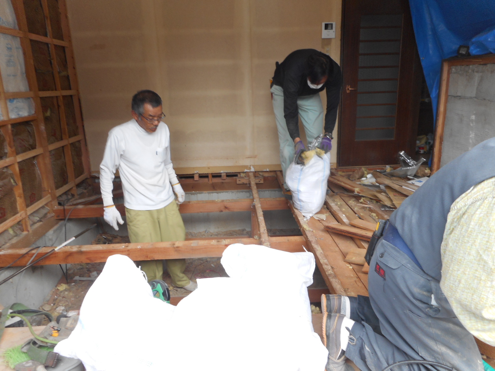 | 根太も、撤去します!! | 床の解体から、根太の撤去まで完了しました!! |