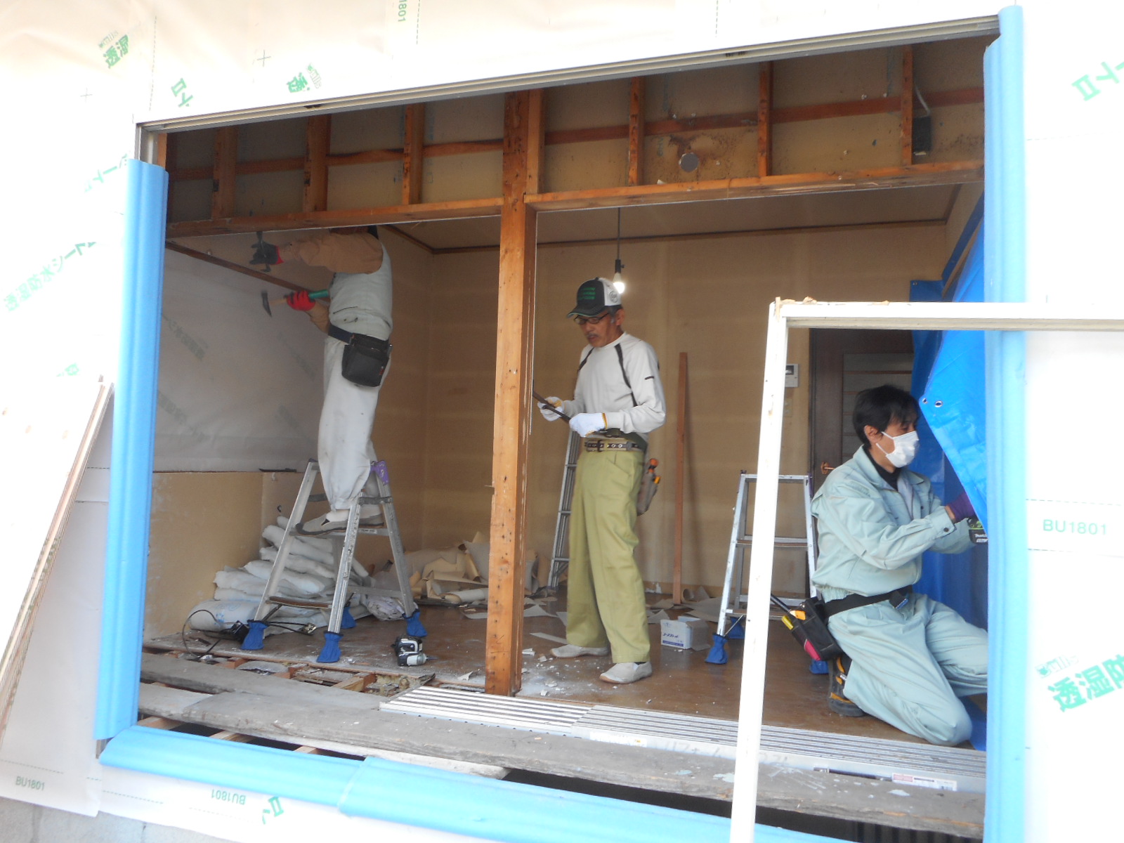 | 中の壁を解体、撤去します!! | 柱を抜くための細工をし、この柱を撤去します!! |