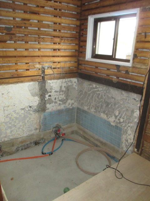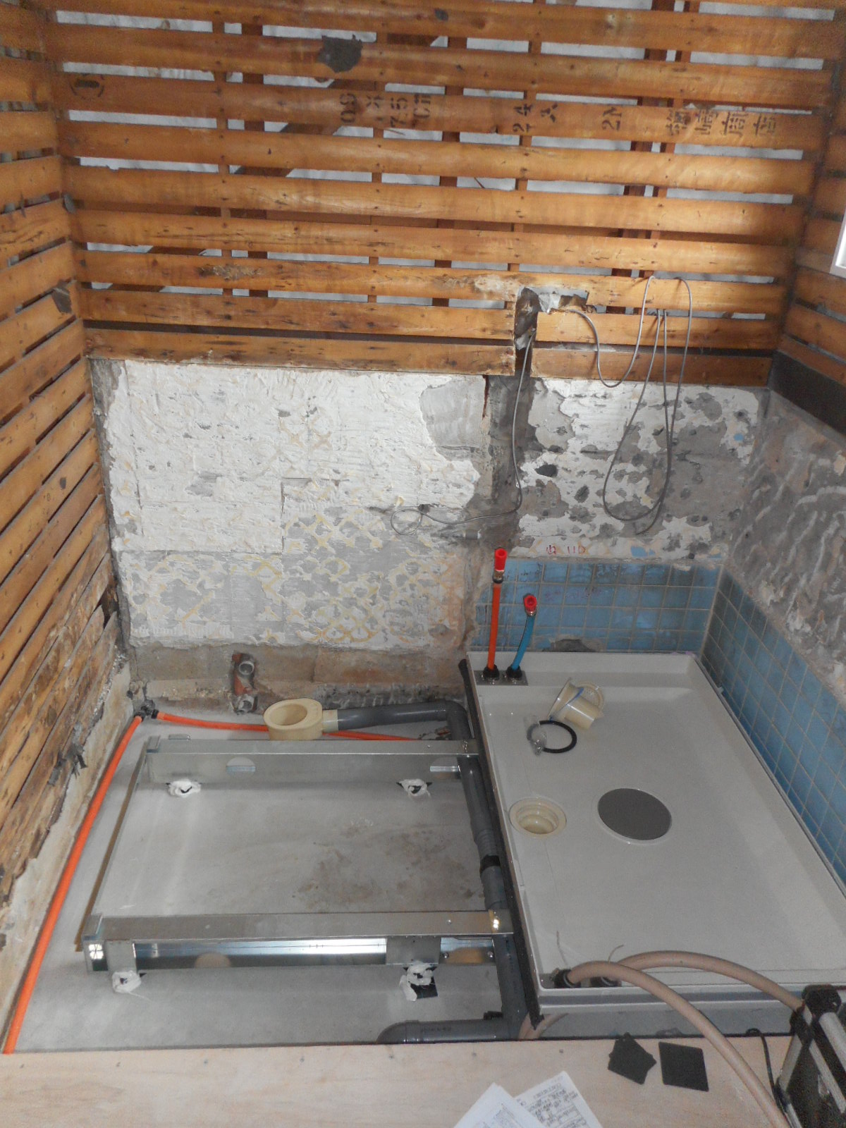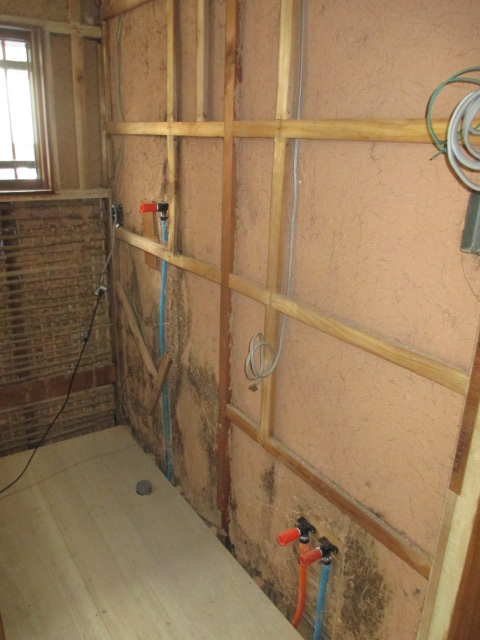 | 新規システムバス用の給水、給湯管の整備をしました!! | 洗面所も新規レイアウト用の給水、給湯、排水管の移設、整備をしました!! |
