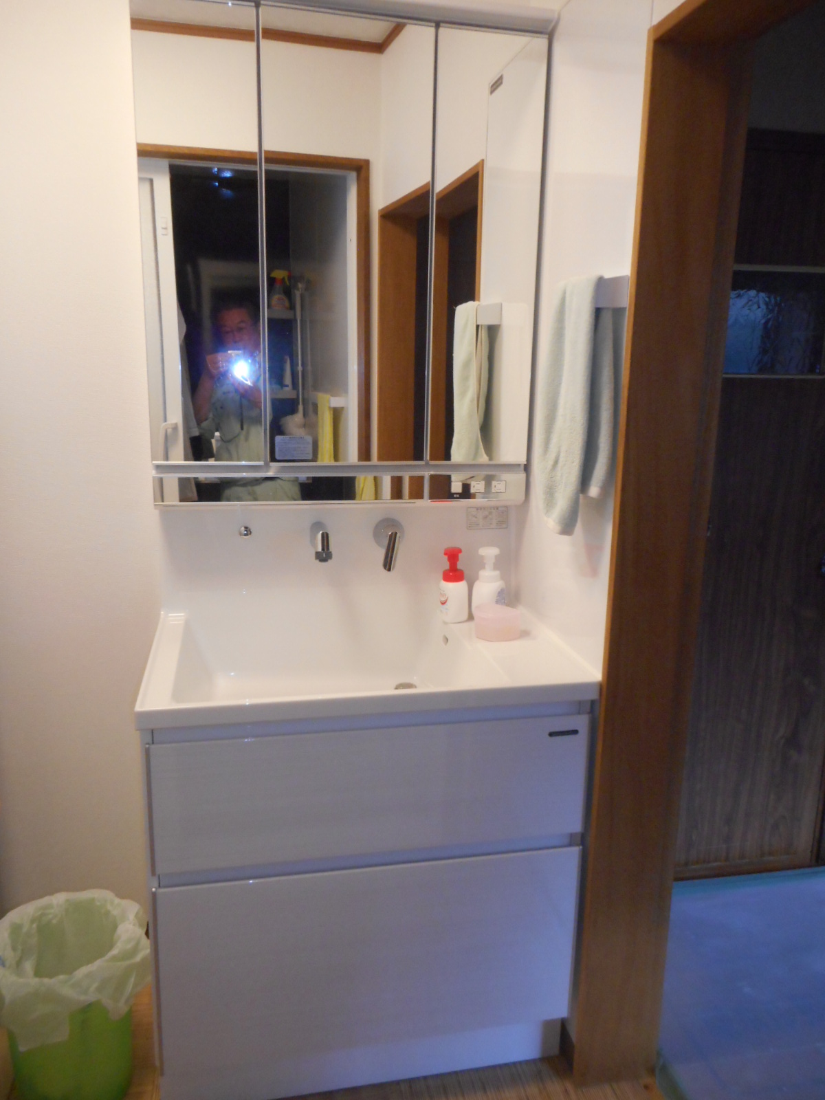 前回のブログで紹介した、市内大坪某邸の改修工事のパート2として今回は洗面所の改修工事を紹介します。