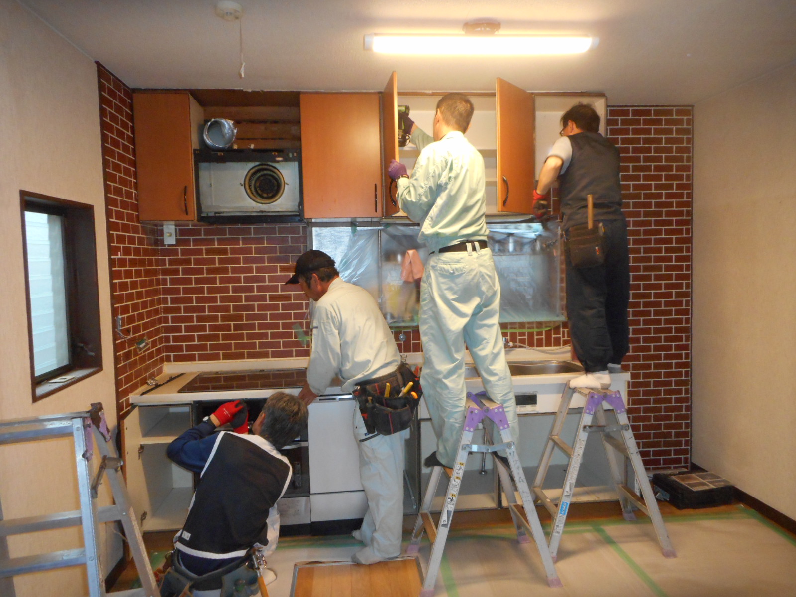 | 既存のキッチンを、解体します!! | キッチンの解体が、完了しました!! |