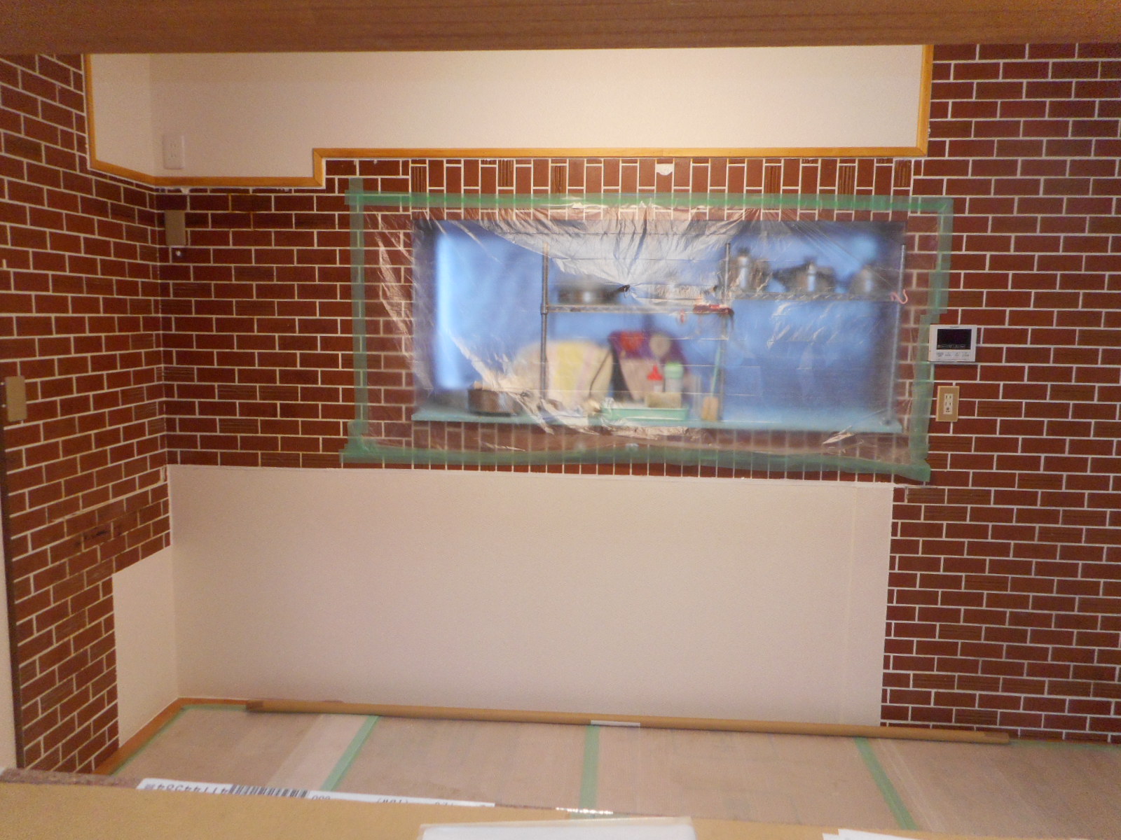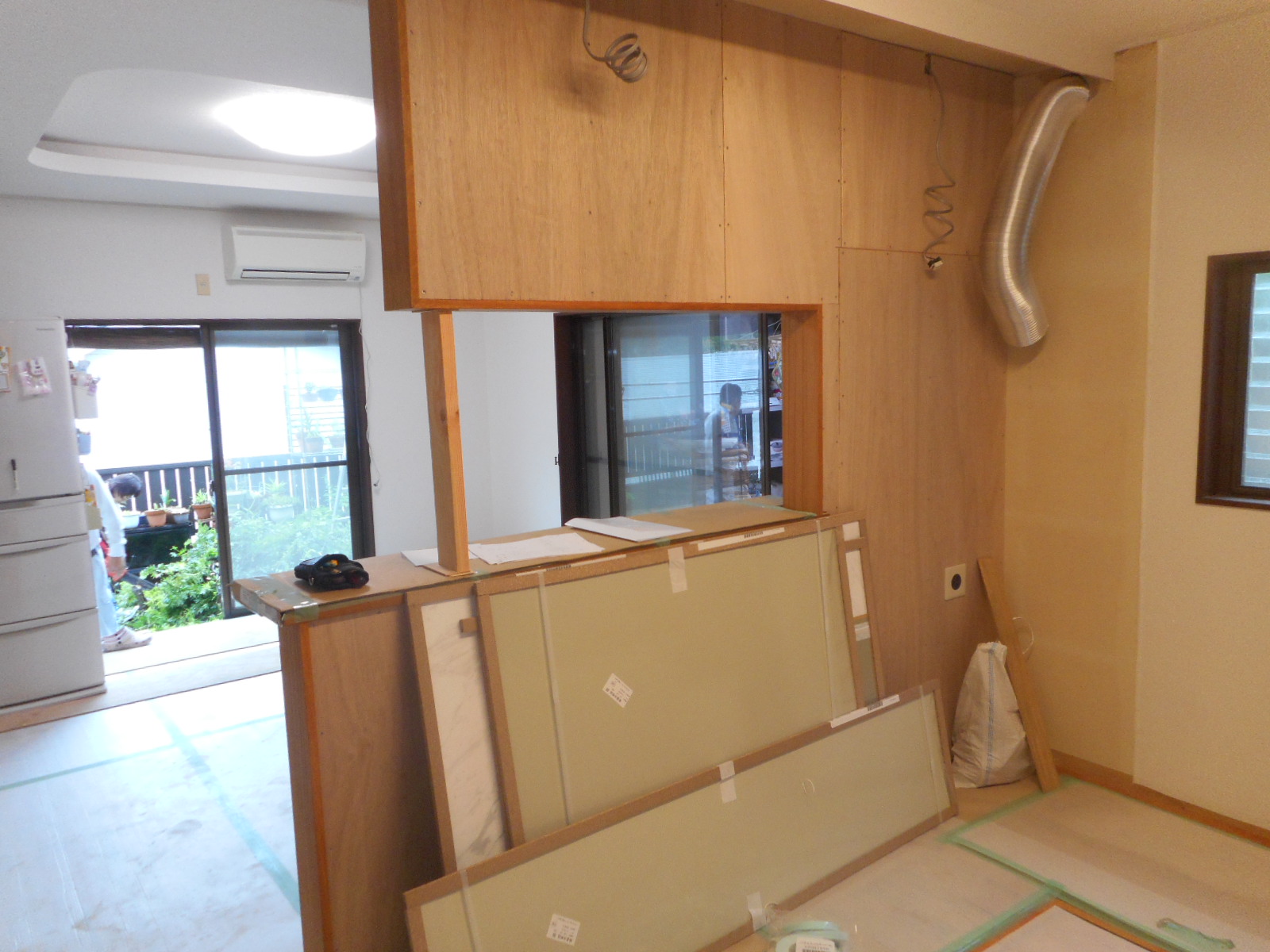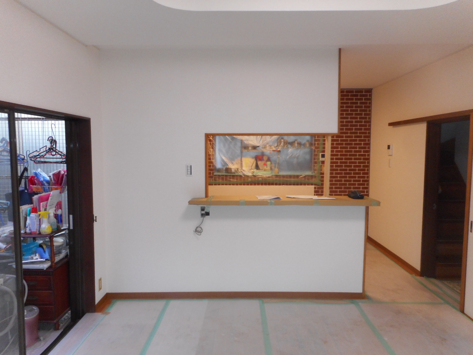 | 対面キッチン用の壁の造作が、完了です!! | 元キッチンがあった部分の、下地整備も完了です!! |