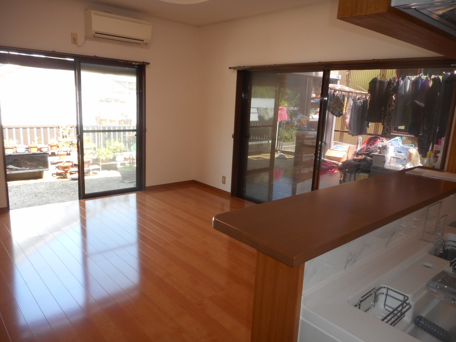 | リビングから、キッチン方向を見る!! (奥の壁際にI型のシステムキッチンがあります) |