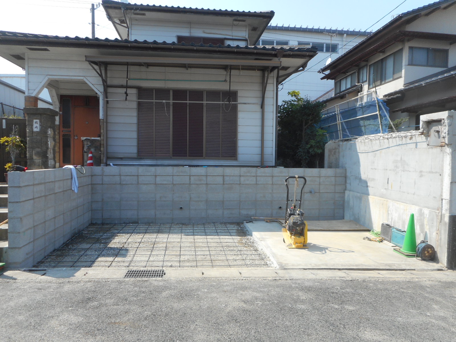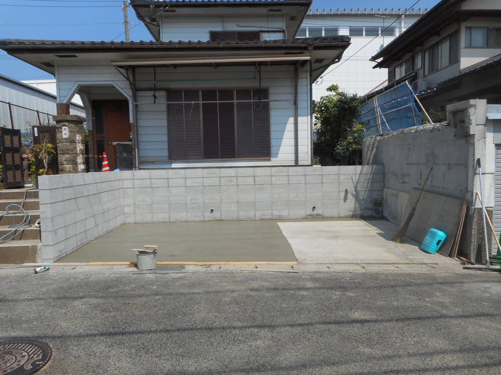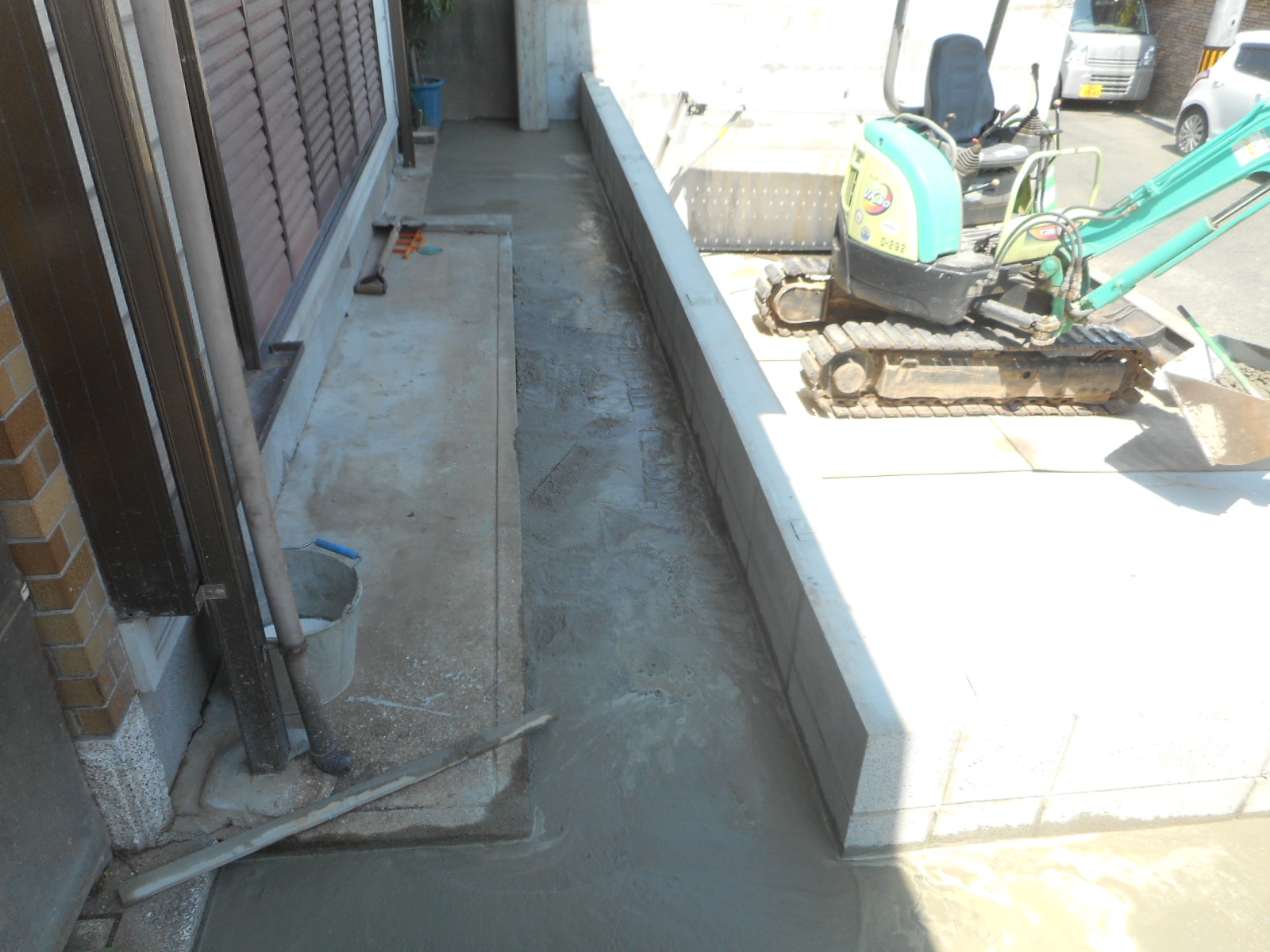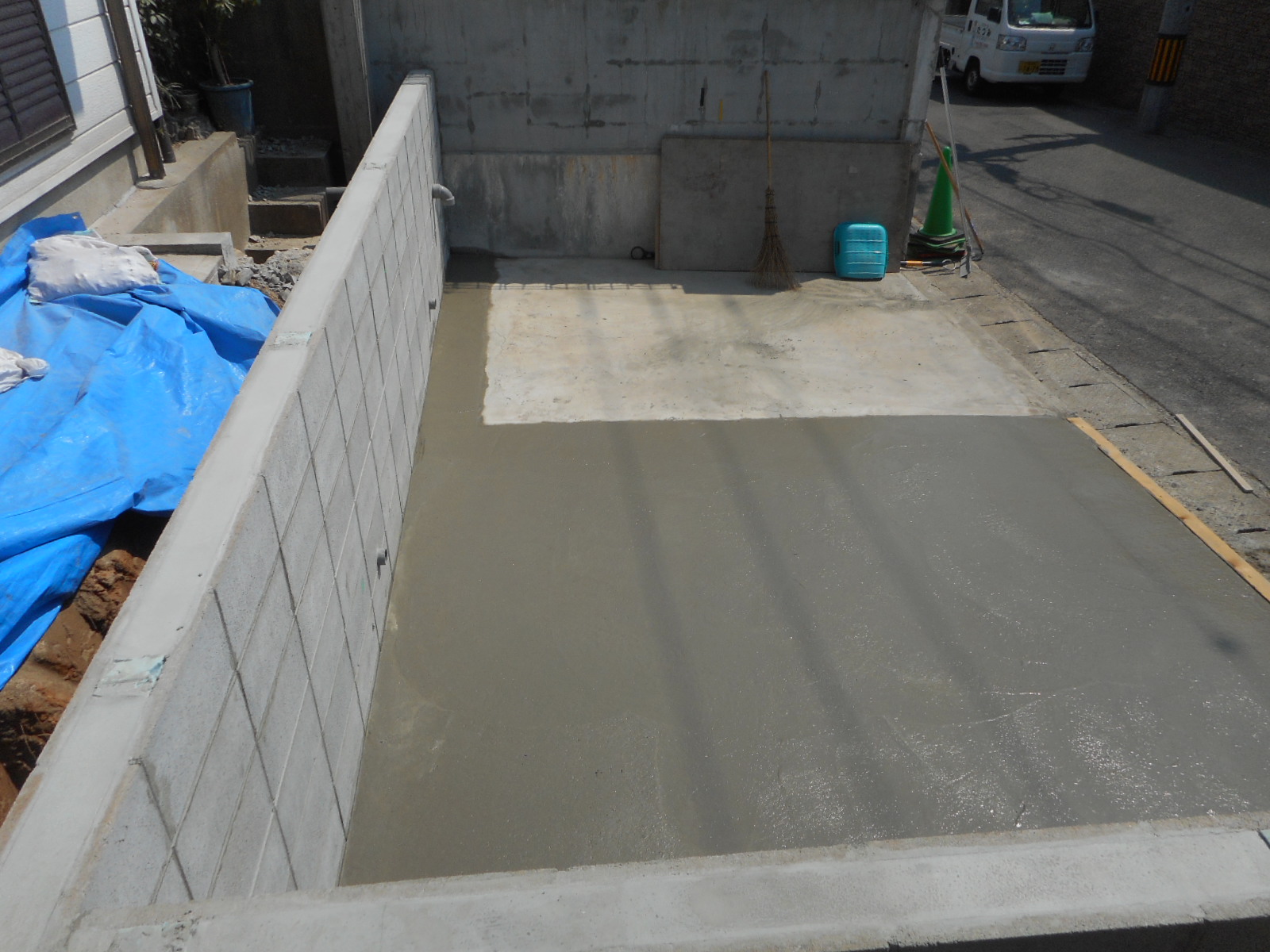 | 生コンの打設が、完了です!! | 元掘り車庫部分の土間は、そのまま残しました!! |