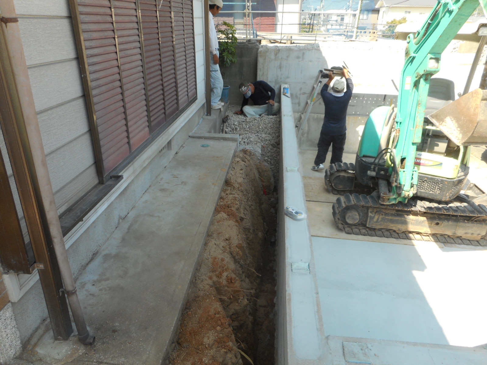 *玄関前から、元掘り車庫方向の完成を見る!!