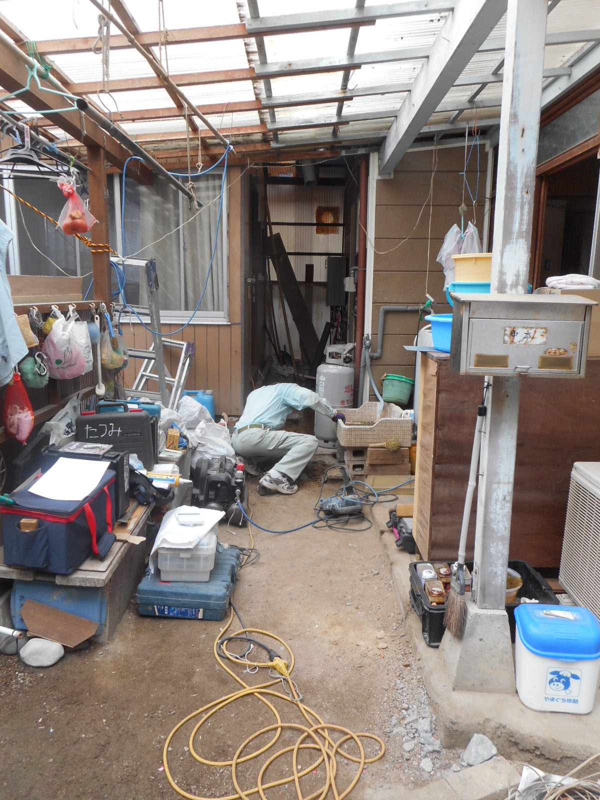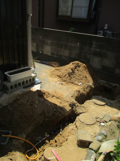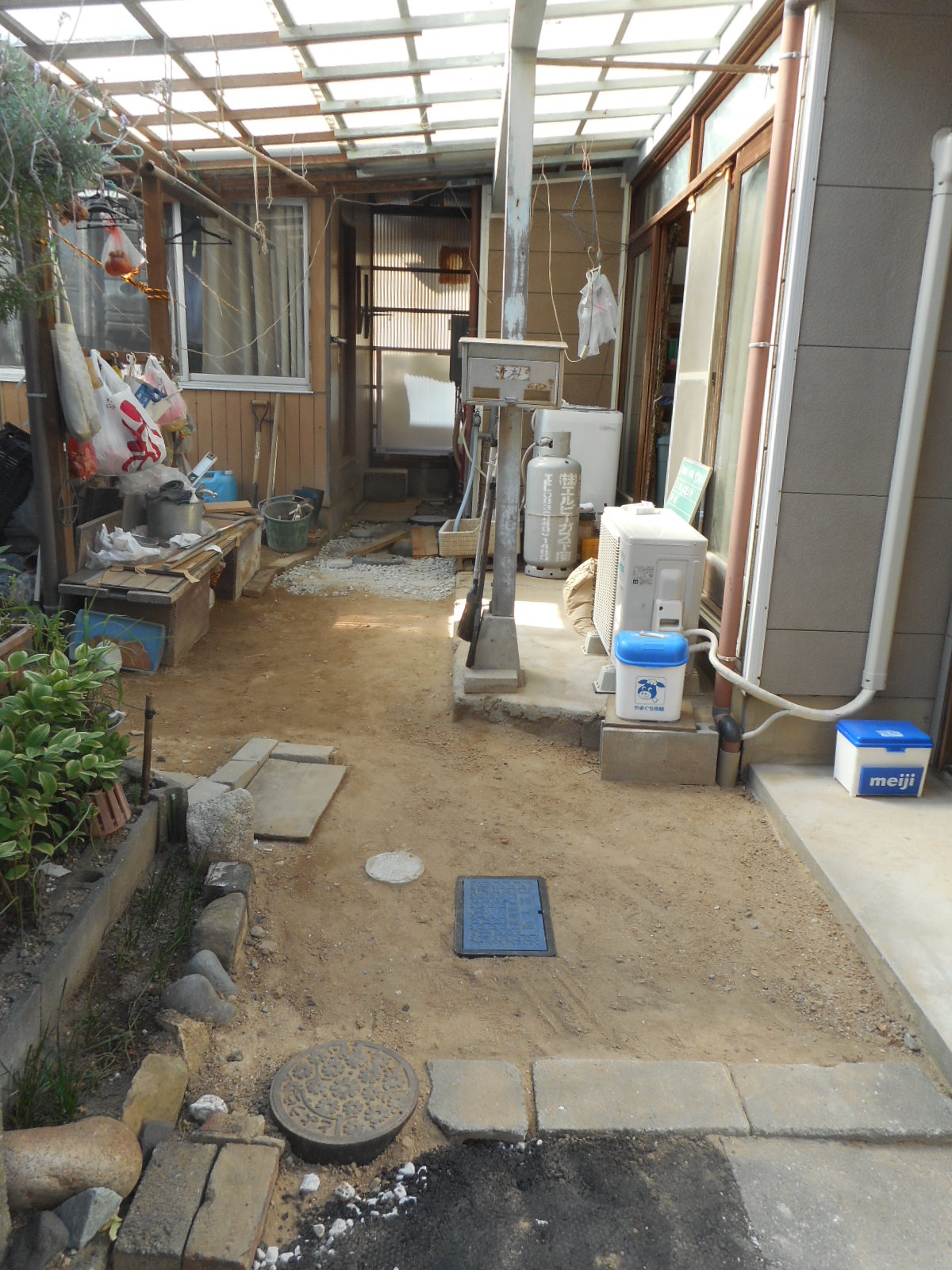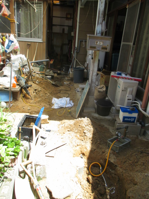 排水もこれまでは、トイレは汲み取りで、その他の排水は側溝に流していたのですが、下水道の本管が近くまで来ているので、すべての排水を本管に繋ぎこむ下水道工事を行います。
