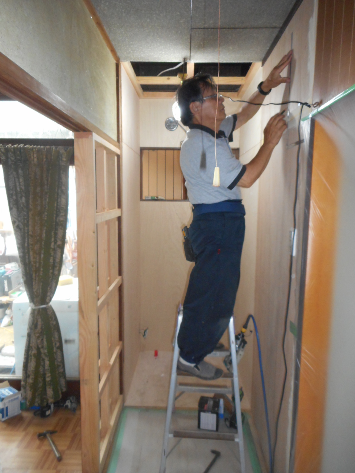 | 内装の、下地づくりをします!! | 入り口廻りも化粧枠を取付け、下地づくりが完了です!! |