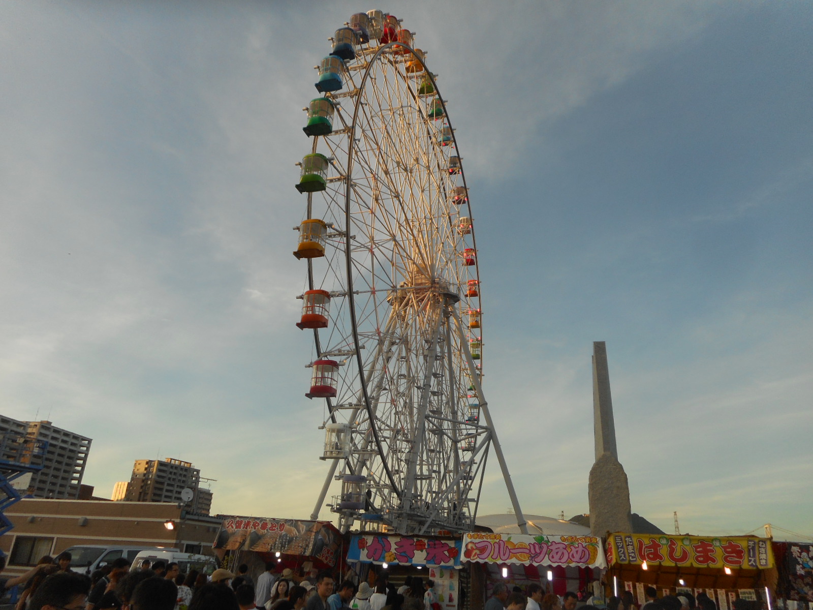 辺りが、だいぶ暗くなって来ました!! 打上げ時間が近づくと、「はいからっと横丁」の大観覧車の明りも消えました!!