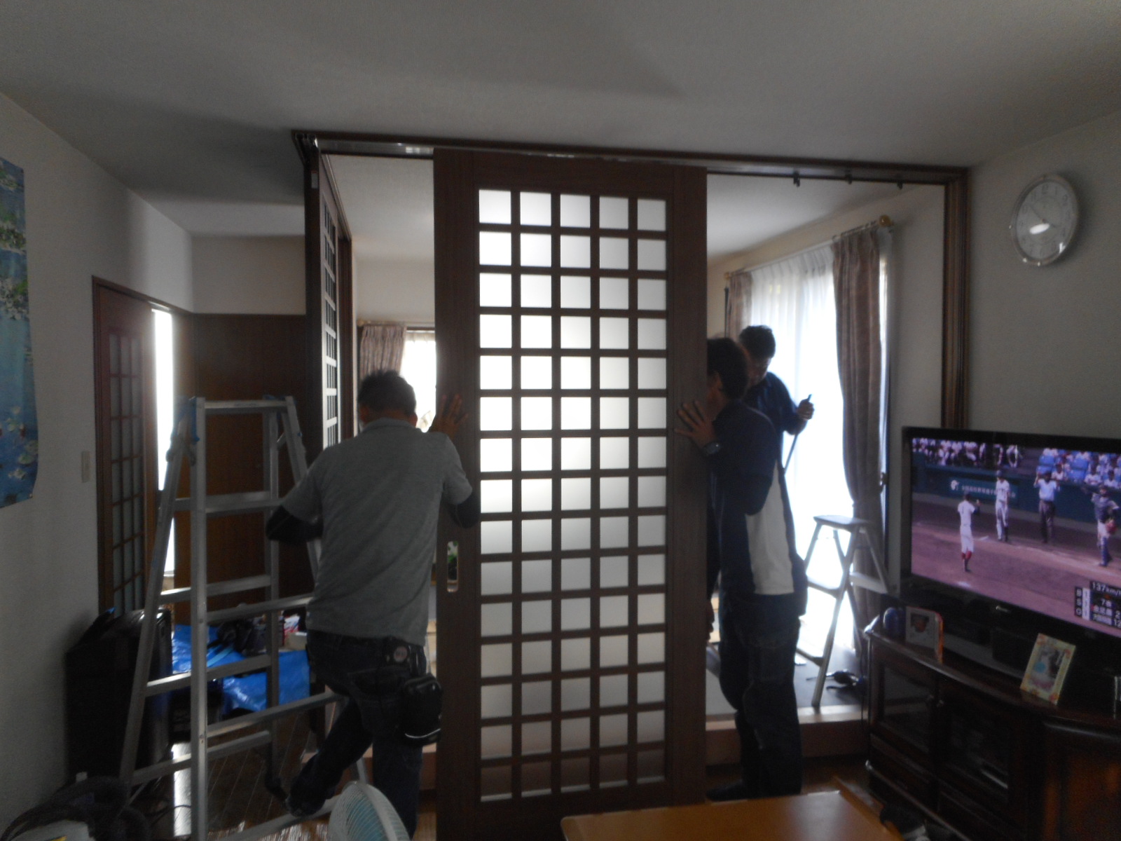 | 枠を取付けています!! | 建具を組み入れます!! |