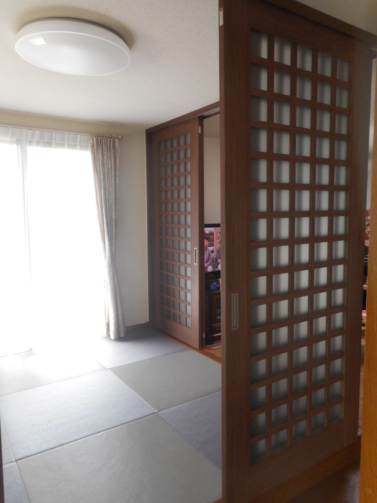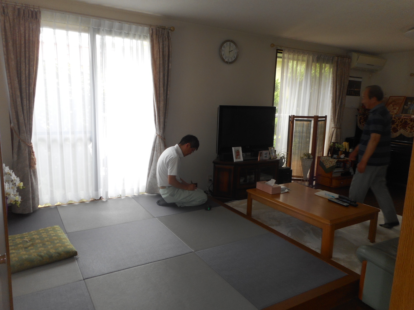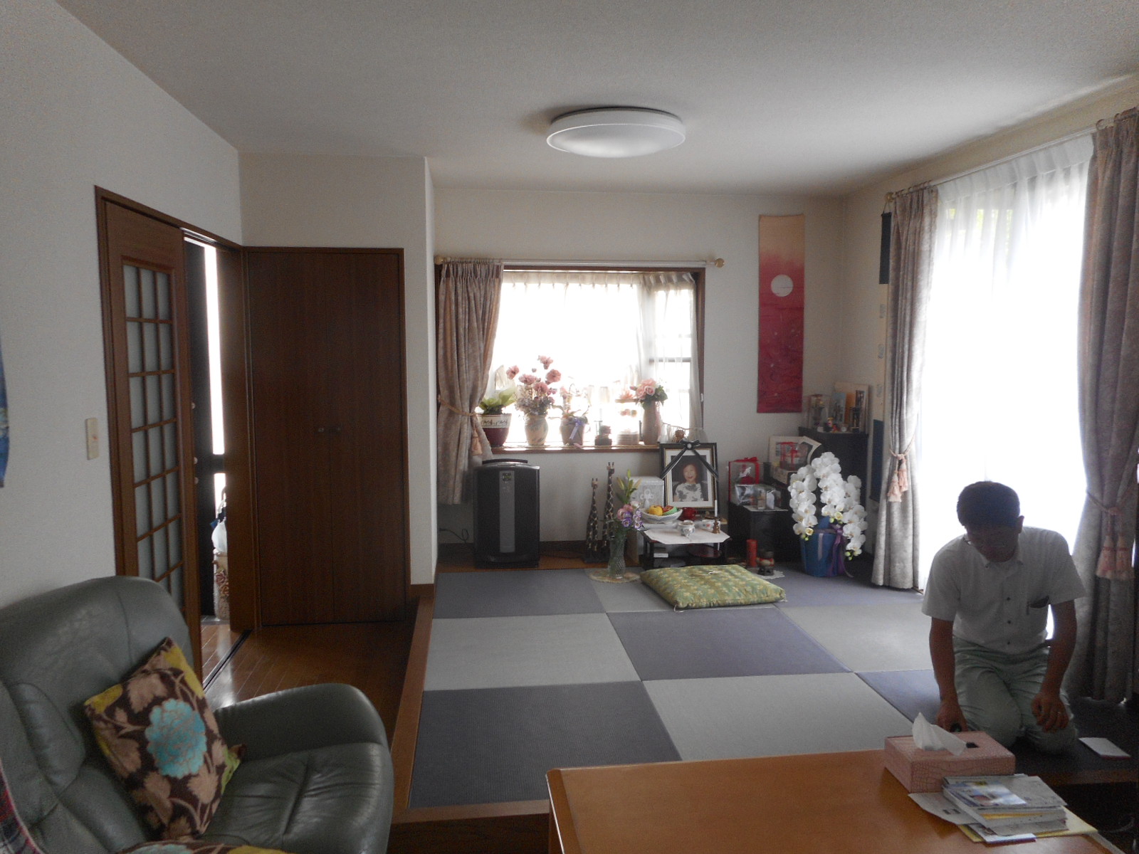 | 琉球畳のスペースを、入り口側から見る!! | リビング側から、見る!! |