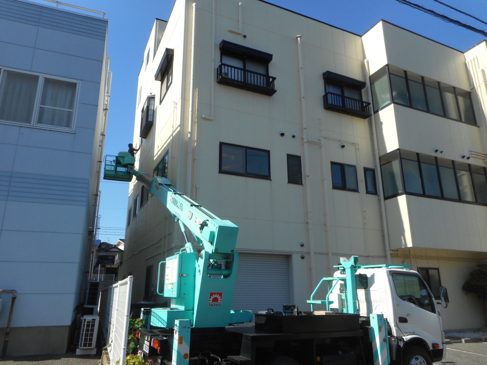 高所なため、今回は高所作業をリースで借りて来て作業を行いました。