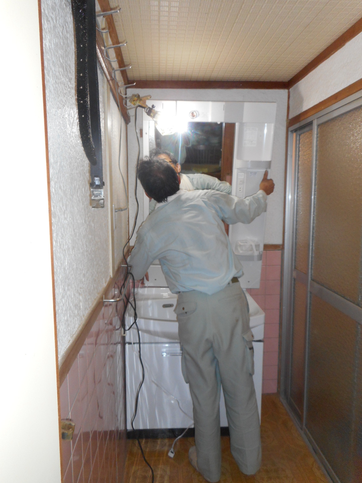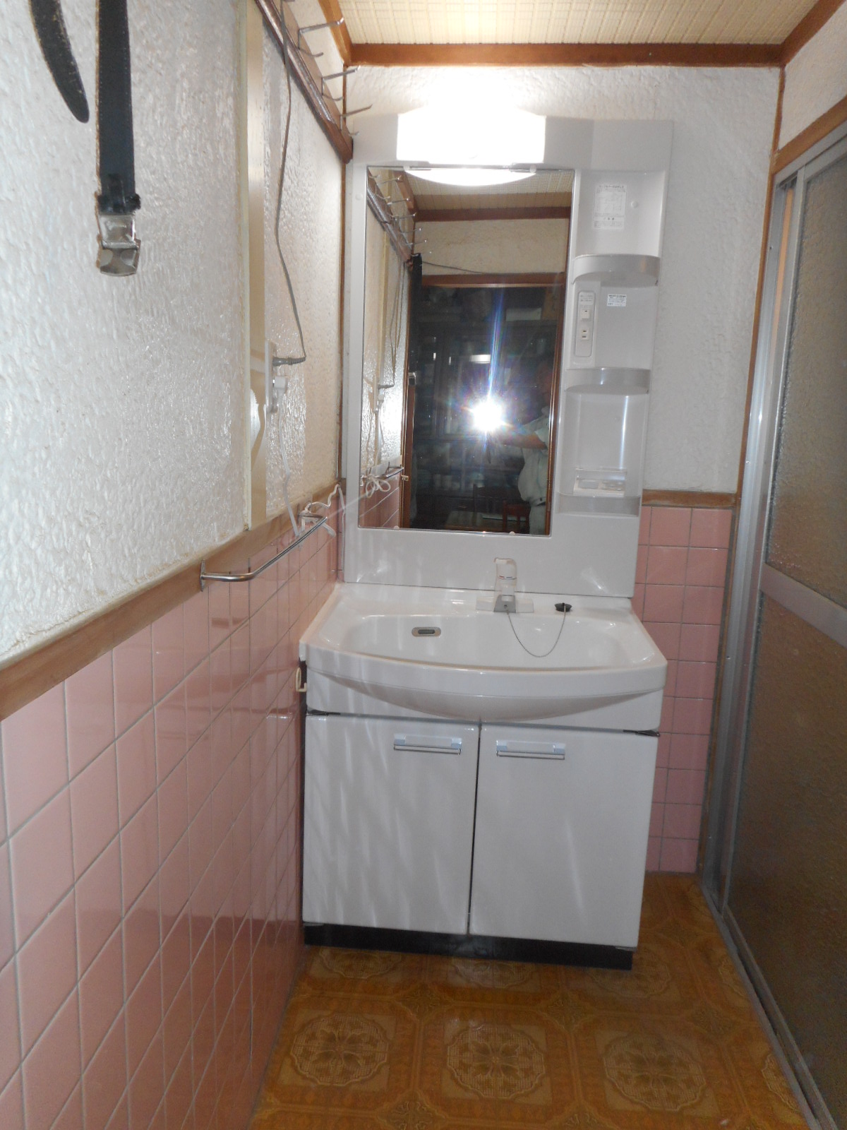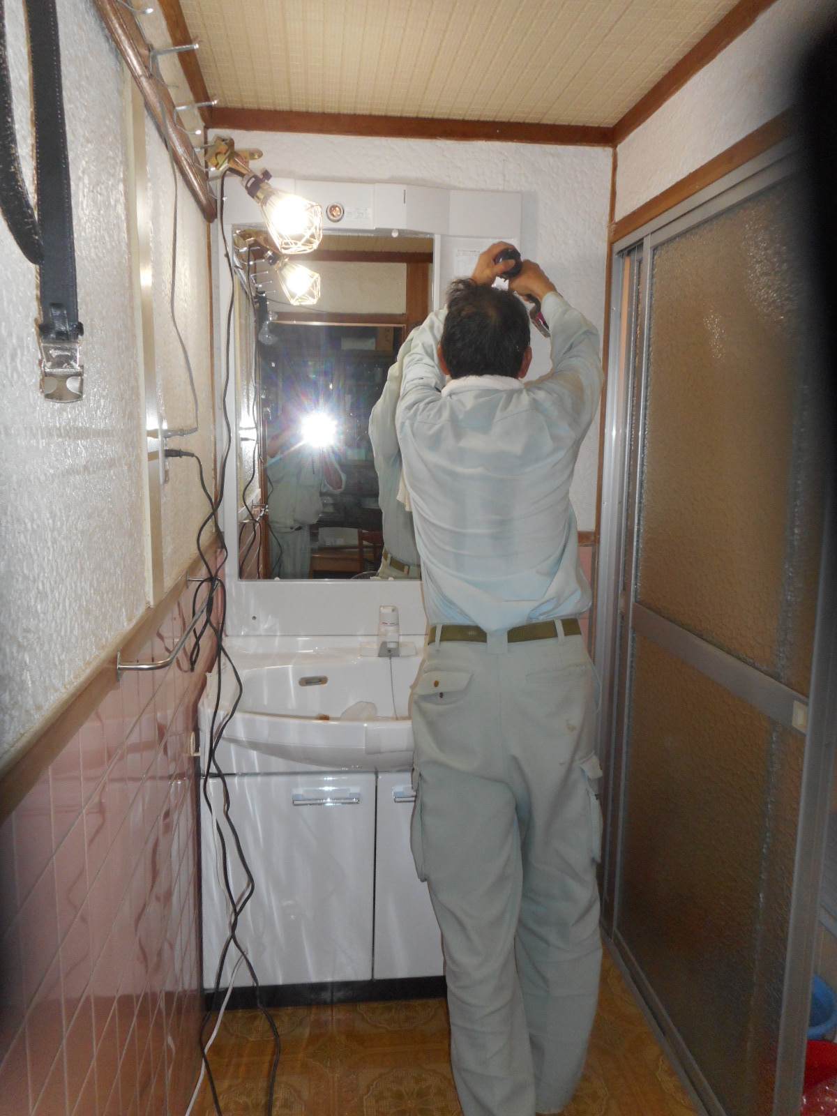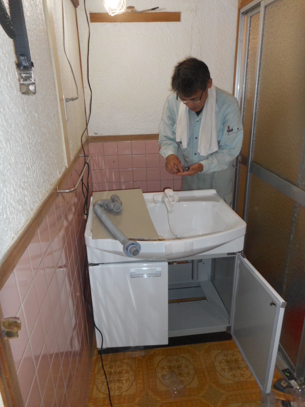 同時に施主さんの希望で、古くなった洗面化粧台も新しく交換することにしました。