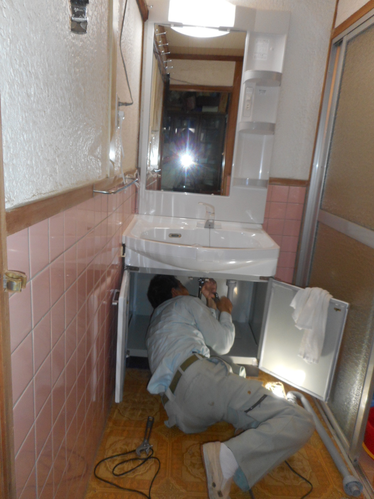 以上で床下の漏水の修理から、洗面化粧台の交換まで、すべての工事の完了です。