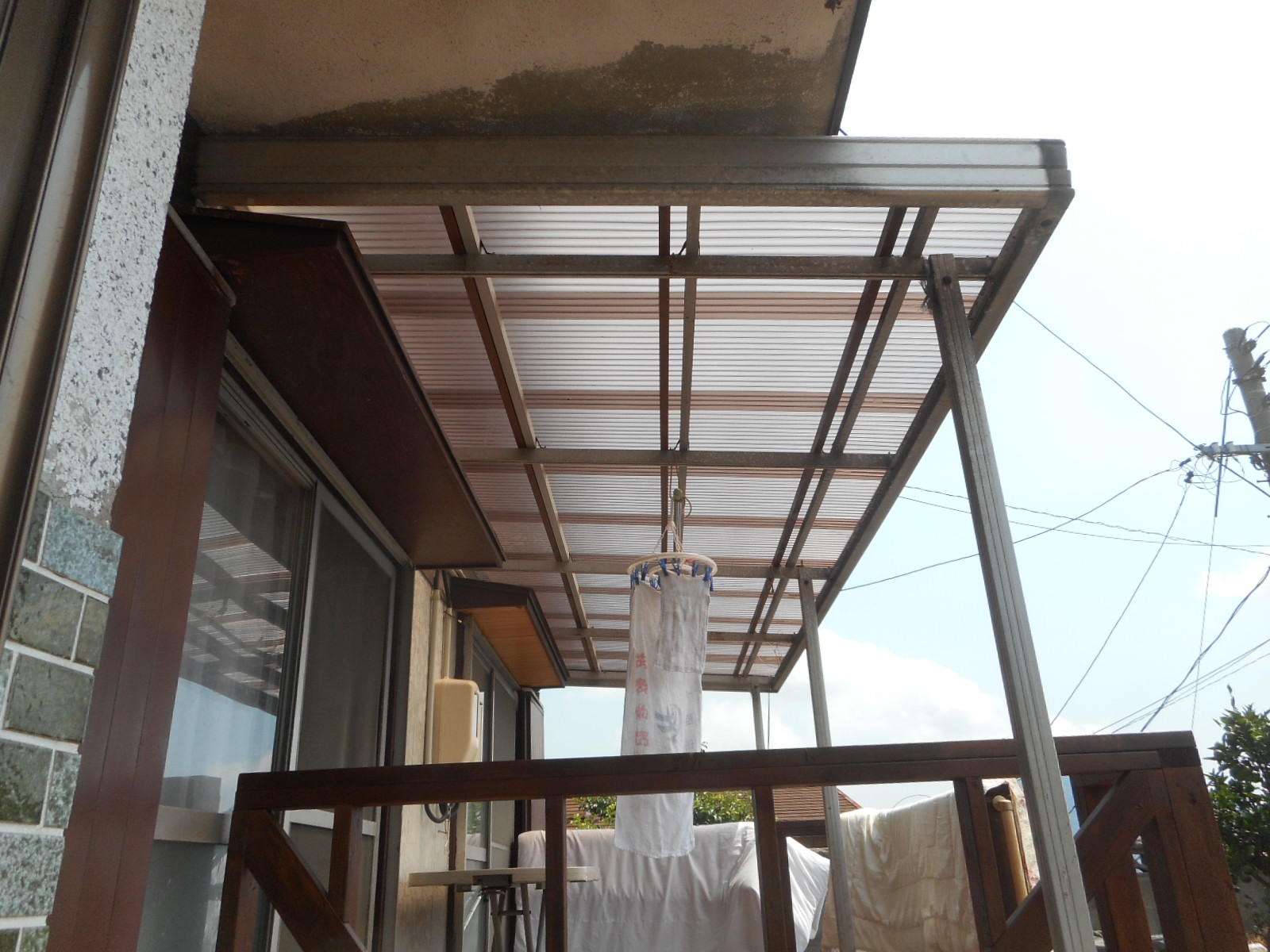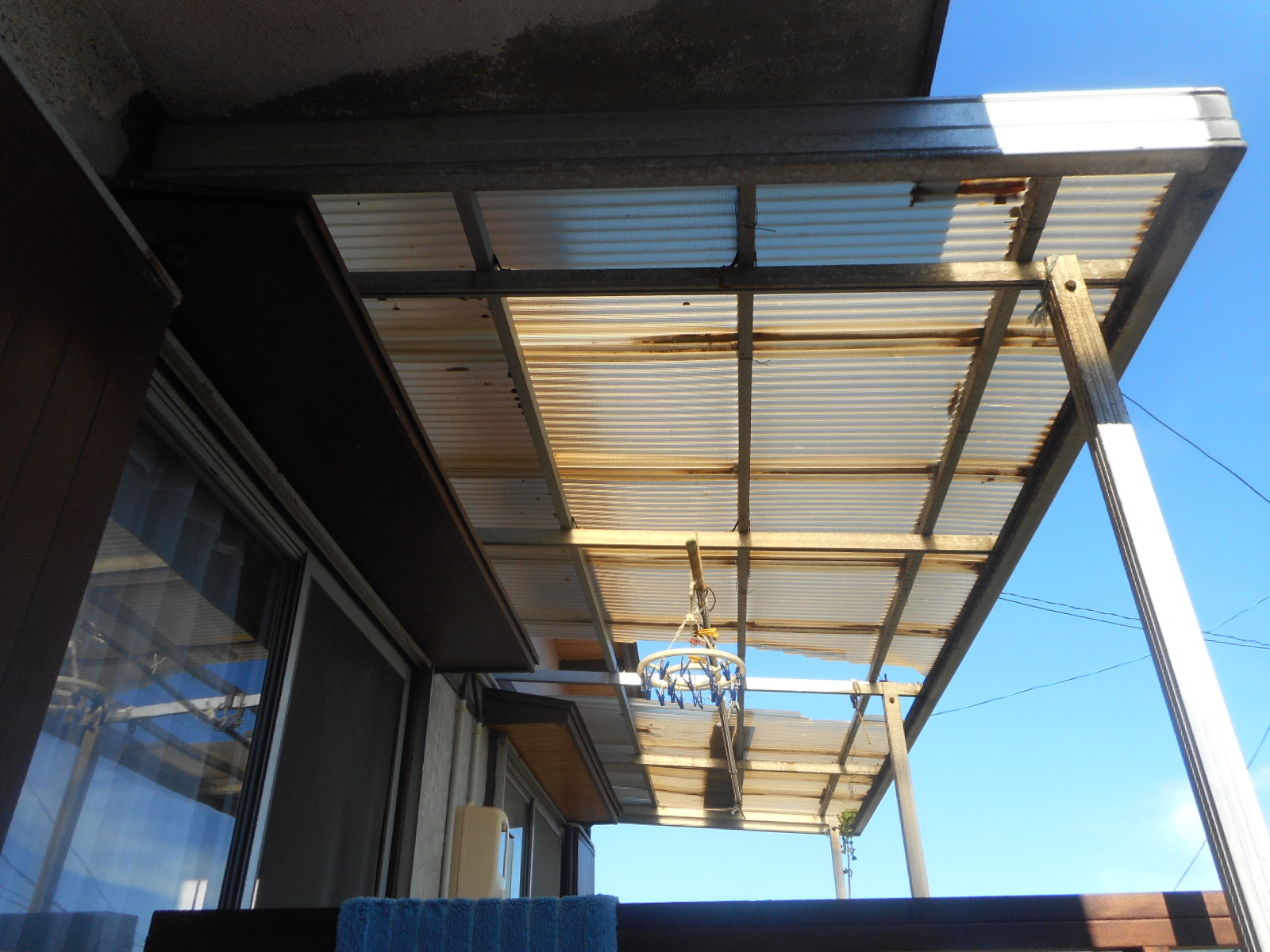 ◎今度、このバルコニーのテラスの屋根の波板が 強風で一部飛んだので修理してほしいとの依頼がありました。