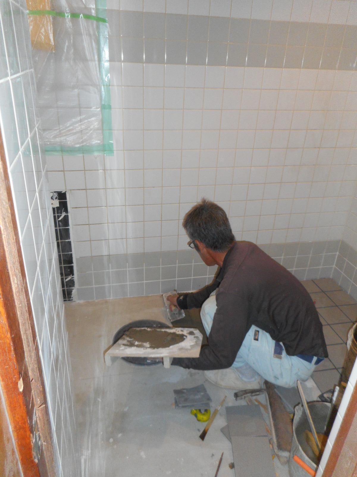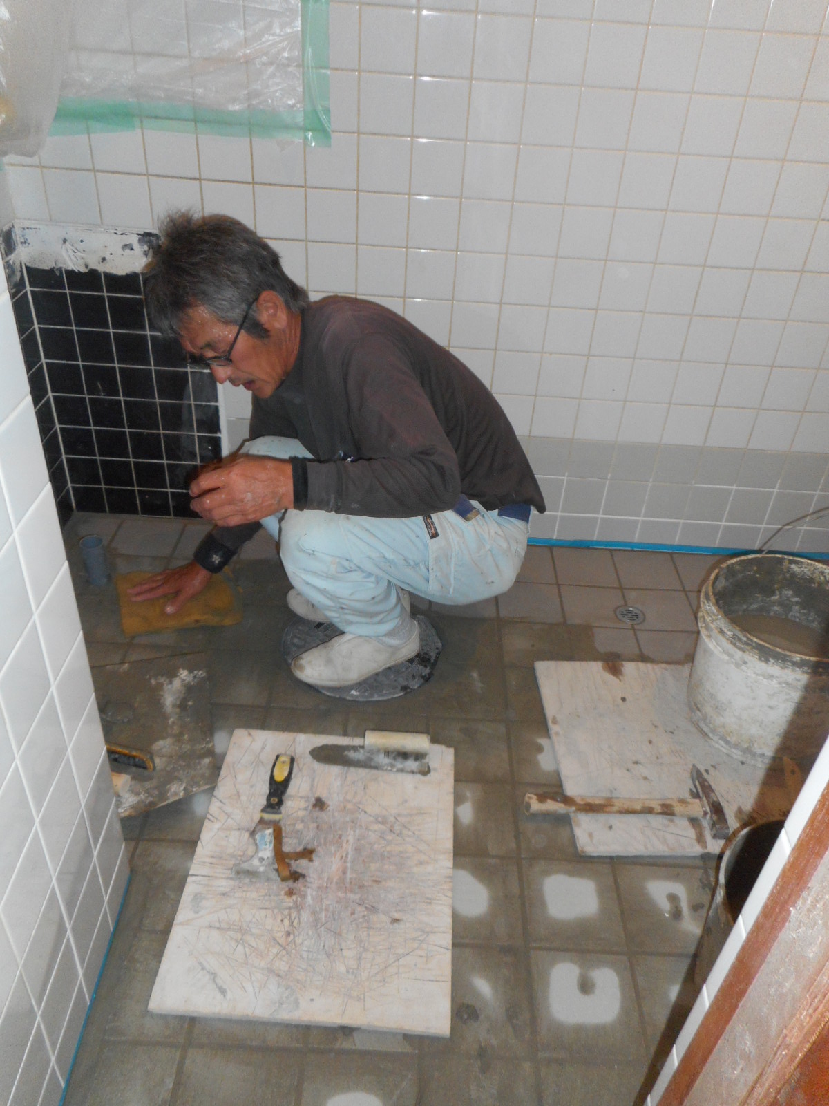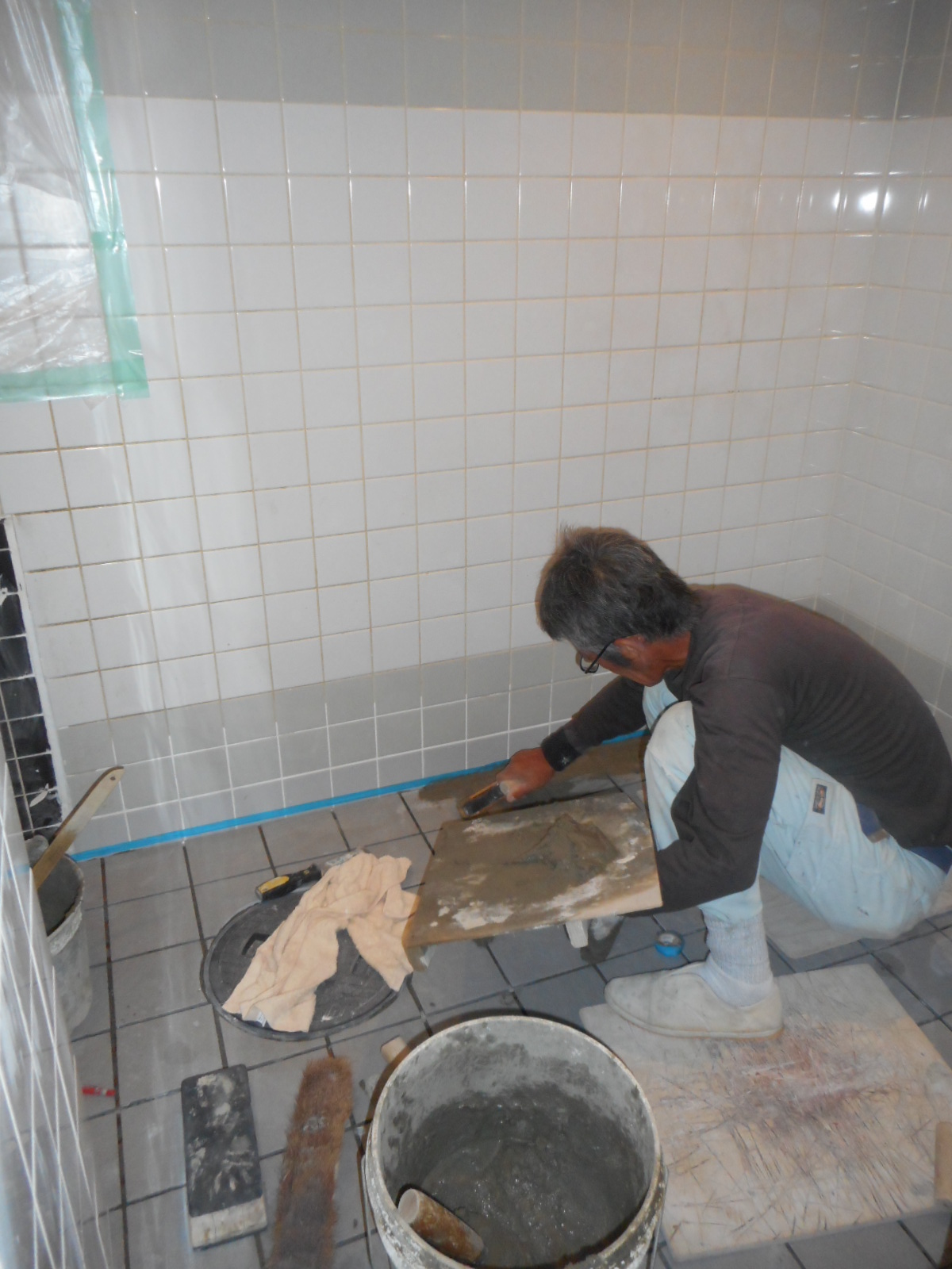 下地整備(タイル張り等)が、完了しました!!