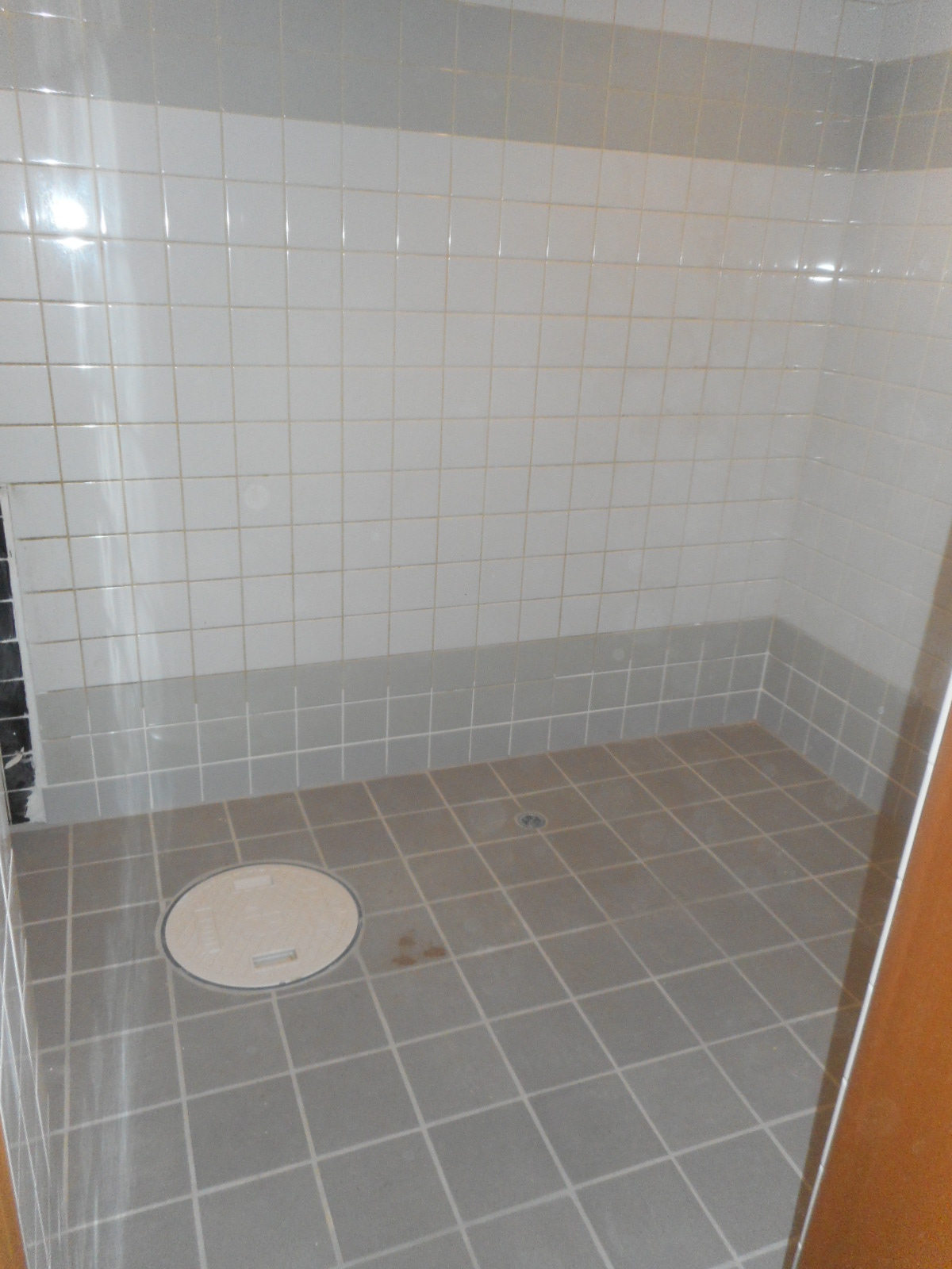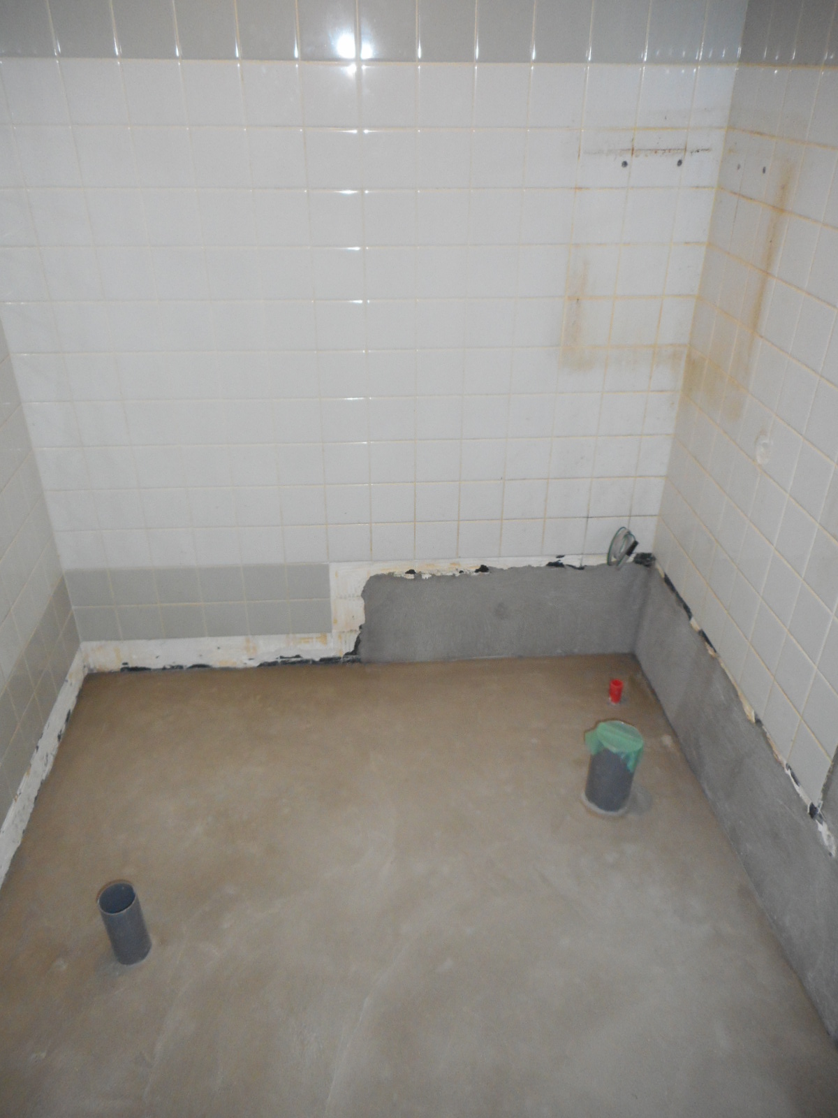 | 壁廻りのタイルの下部を、補修します!! | 土間は、全面新規のタイルを張ります!! |